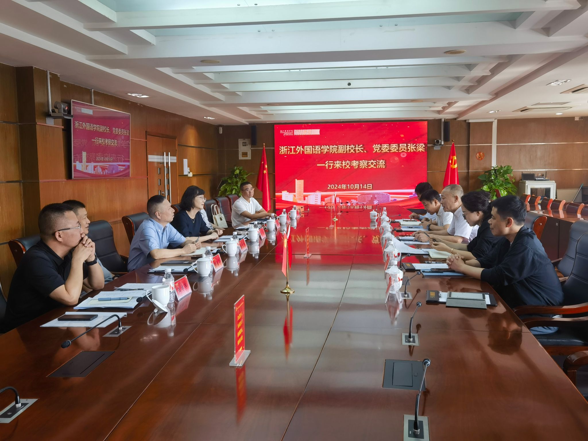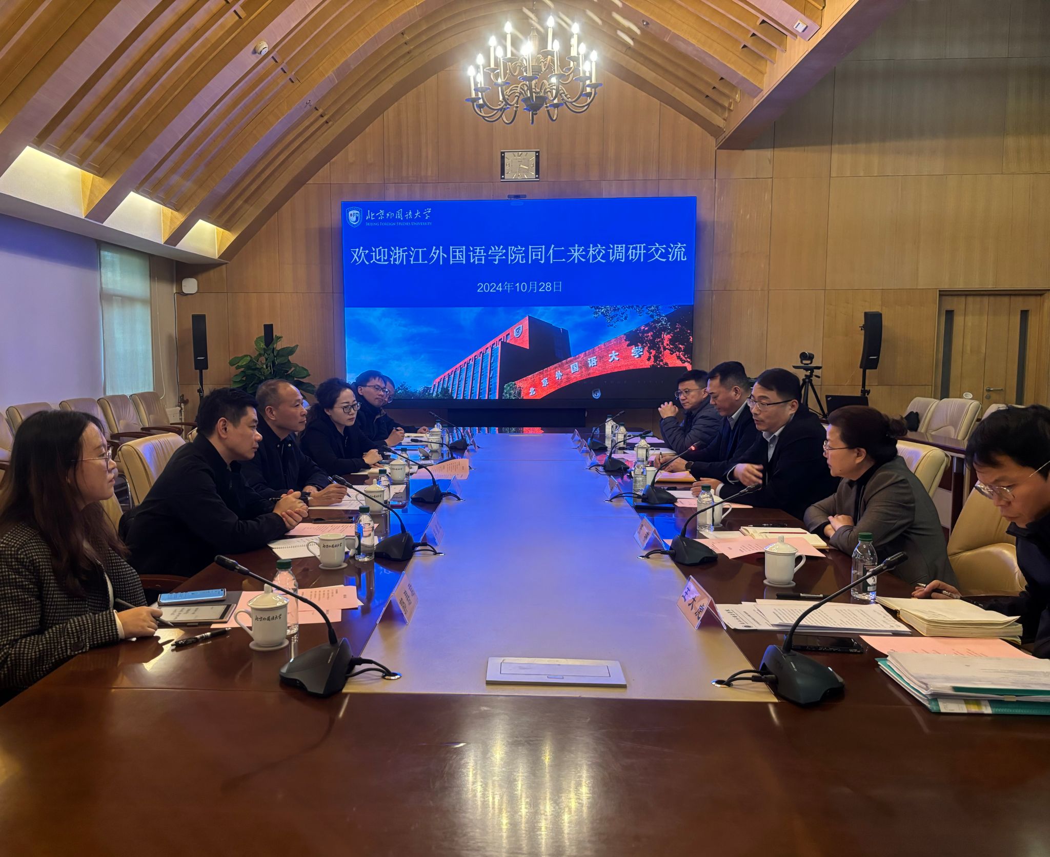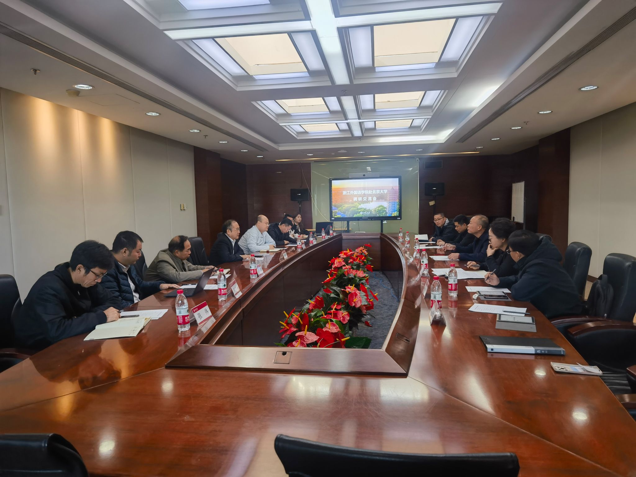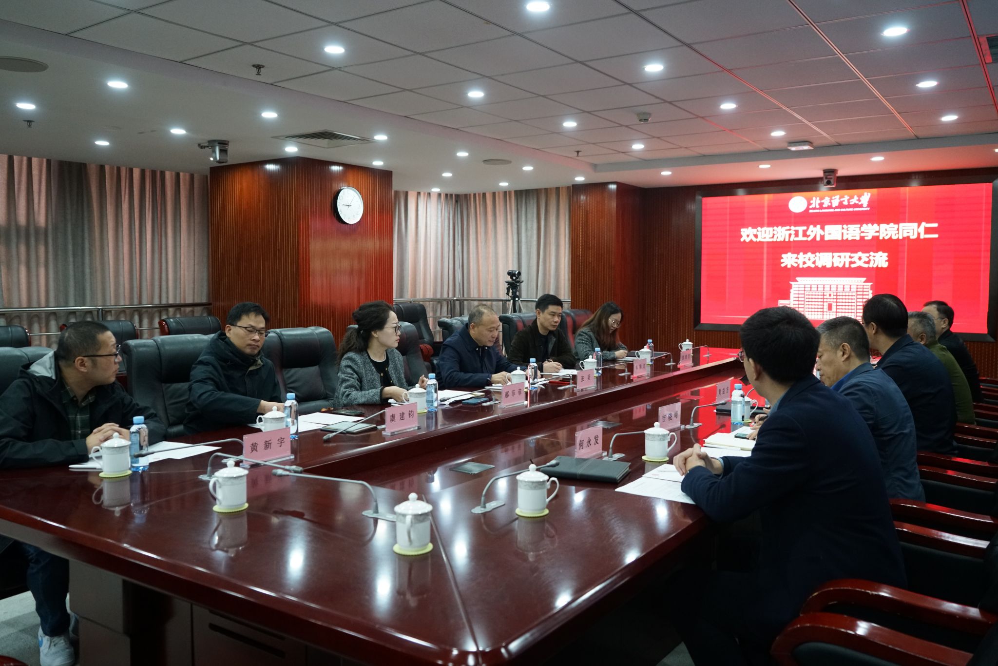 近日,副校长、党委委员张梁带队赴北京大学、北京外国语大学、北京语言大学、北京第二外国语学院、浙江传媒学院等高校,就大后勤管理体制改革、优化学校资源配置、提升资产经营能力等方面工作开展调研。北京大学党委常委、副校长董志勇,北京外国语大学党委常委、副校长丁浩,北京语言大学党委常委、副校长黄益方,北京第二外国语学院党委副书记李臻,浙江传媒学院副院长、党委委员姜雯等分别会见了张梁一行并组织召开座谈会。