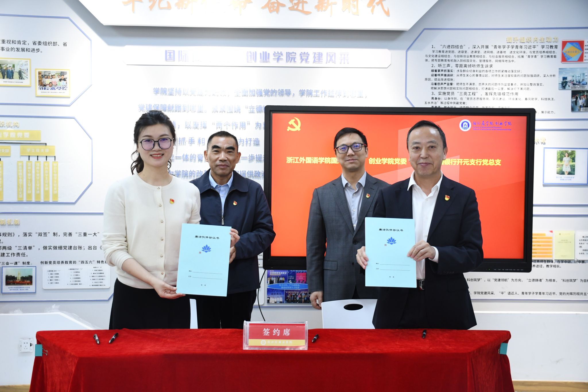 商学院、创业学院党委与中国银行开元支行党总支签订党建共建协议、廉洁伙伴协议。