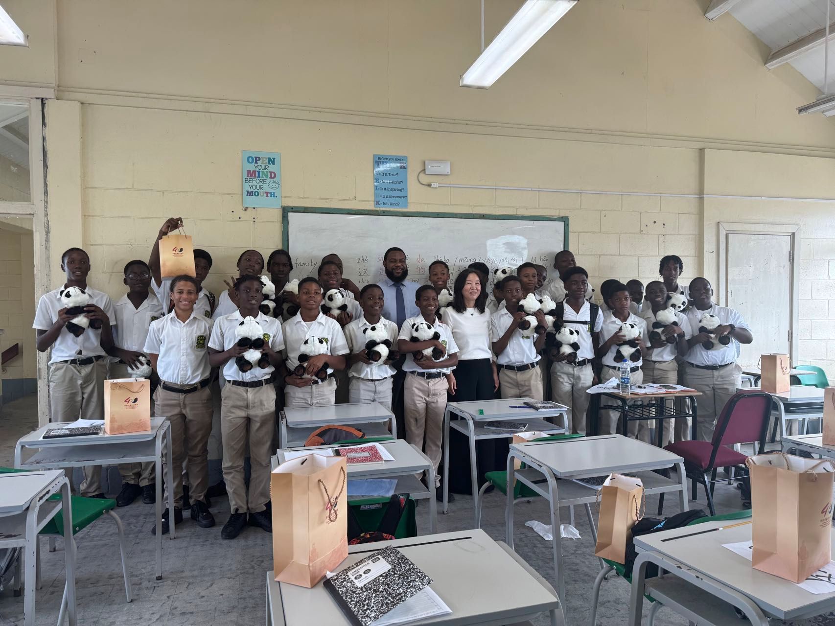 日前,中国驻安提瓜和巴布达大使张艳玲及随行人员到访安巴孔子学院(CIAB)的四个中学教学点和安巴华侨华人子弟中文兴趣班听课并指导工作,并与安巴孔院中方院长、开云官网李丽娟和师生们亲切交流。