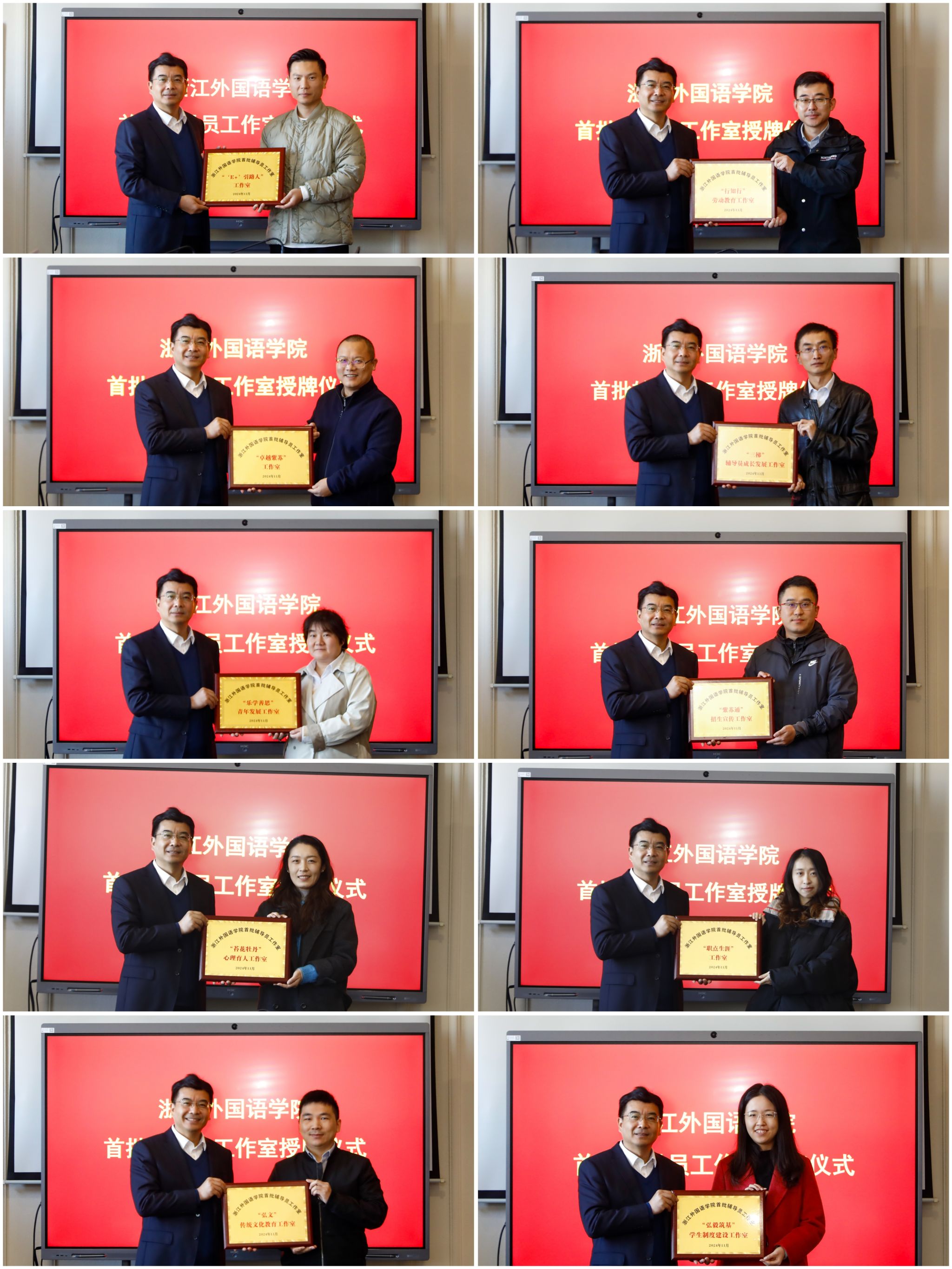 经个人申请、学院推荐、资格审核、专家评审、校内公示,学校首批立项建设10个辅导员工作室。工作方向涉及学生核心素养提升与成长需求、中华传统美德教育与实践、学风建设与考研升学指导服务、“劳动+”实践教育、学生荣誉体系建设、特殊群体学生呵护关爱、学生工作制度机制与标准化流程建设、招生宣传工作、职业规划与就业指导和辅导员队伍能力素质提升。