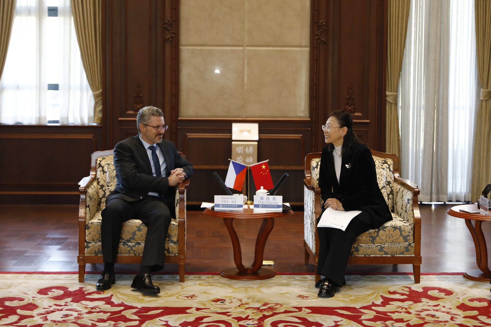 11月29日,捷克驻上海总领事卡雷尔·史诺一行到访浙外,副校长、党委委员柴改英出席会见。
