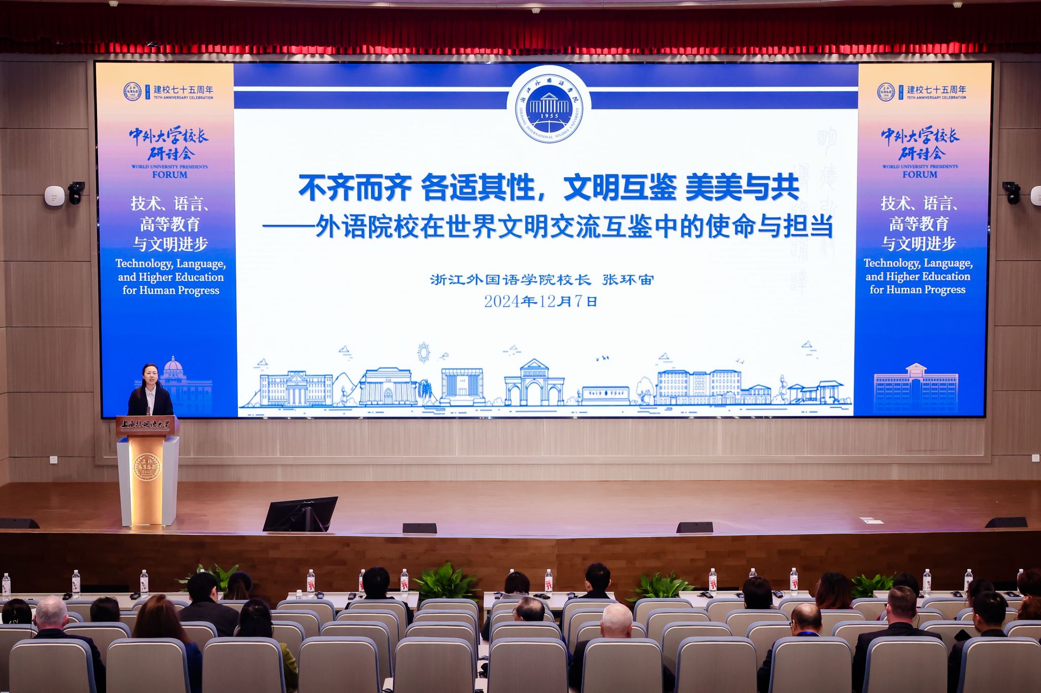 12月7日,由上海外国语大学主办的“技术、语言、高等教育与文明进步:中外大学校长研讨会”在上海外国语大学举行,就人工智能在推动教育发展和促进全球文化理解方面的巨大潜力以及高等教育在全球合作与文化交流等话题展开探讨。来自49所海内外高校、国际组织和机构的专家学者参加会议。校长、党委副书记张环宙应邀出席会议并作发言。