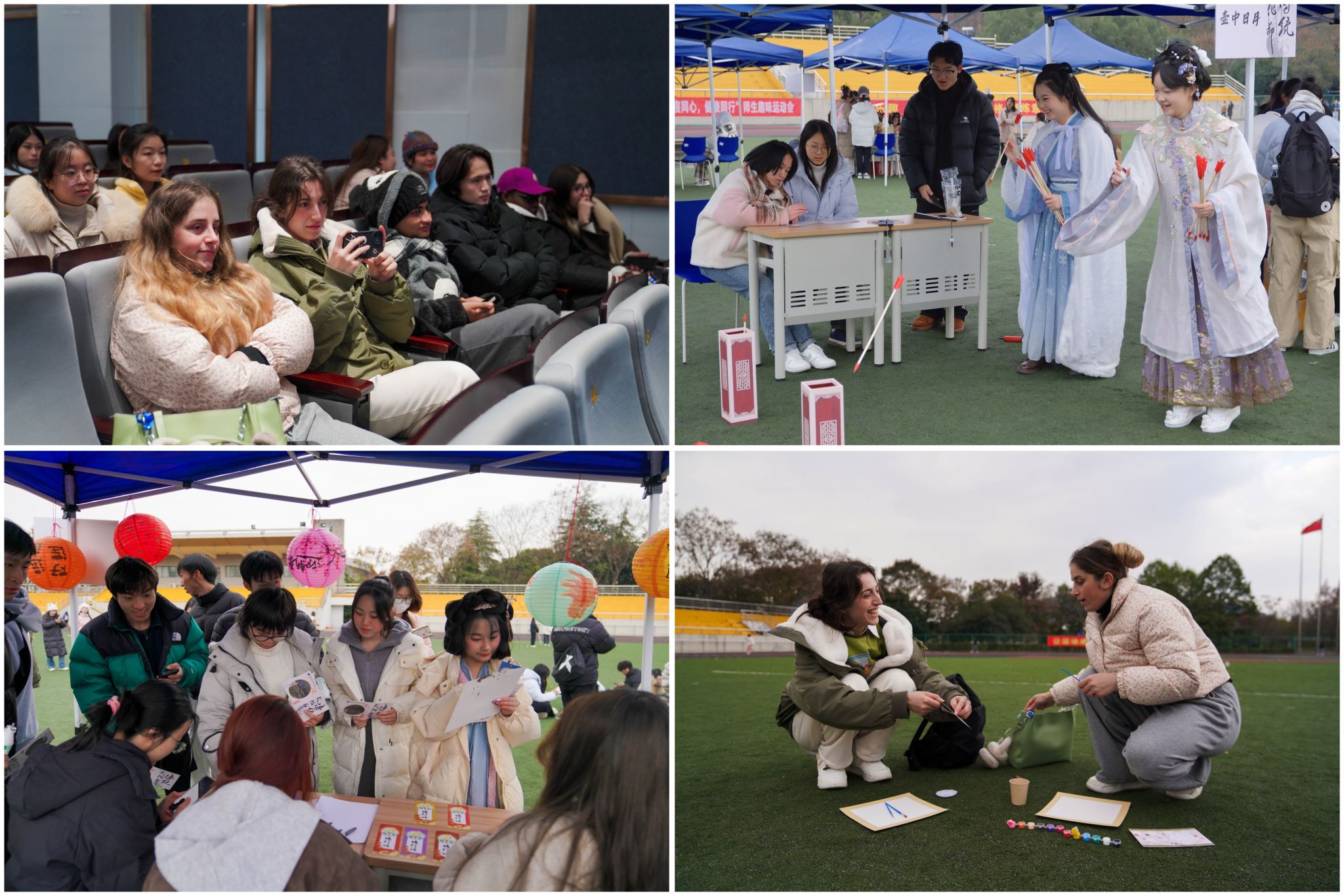 开幕式后,田径场还进行了传统文化节游园会,蹴鞠、投壶、品茗、剪纸、染卡……丰富的互动体验类项目让师生们进一步领略了传统文化的别样魅力。