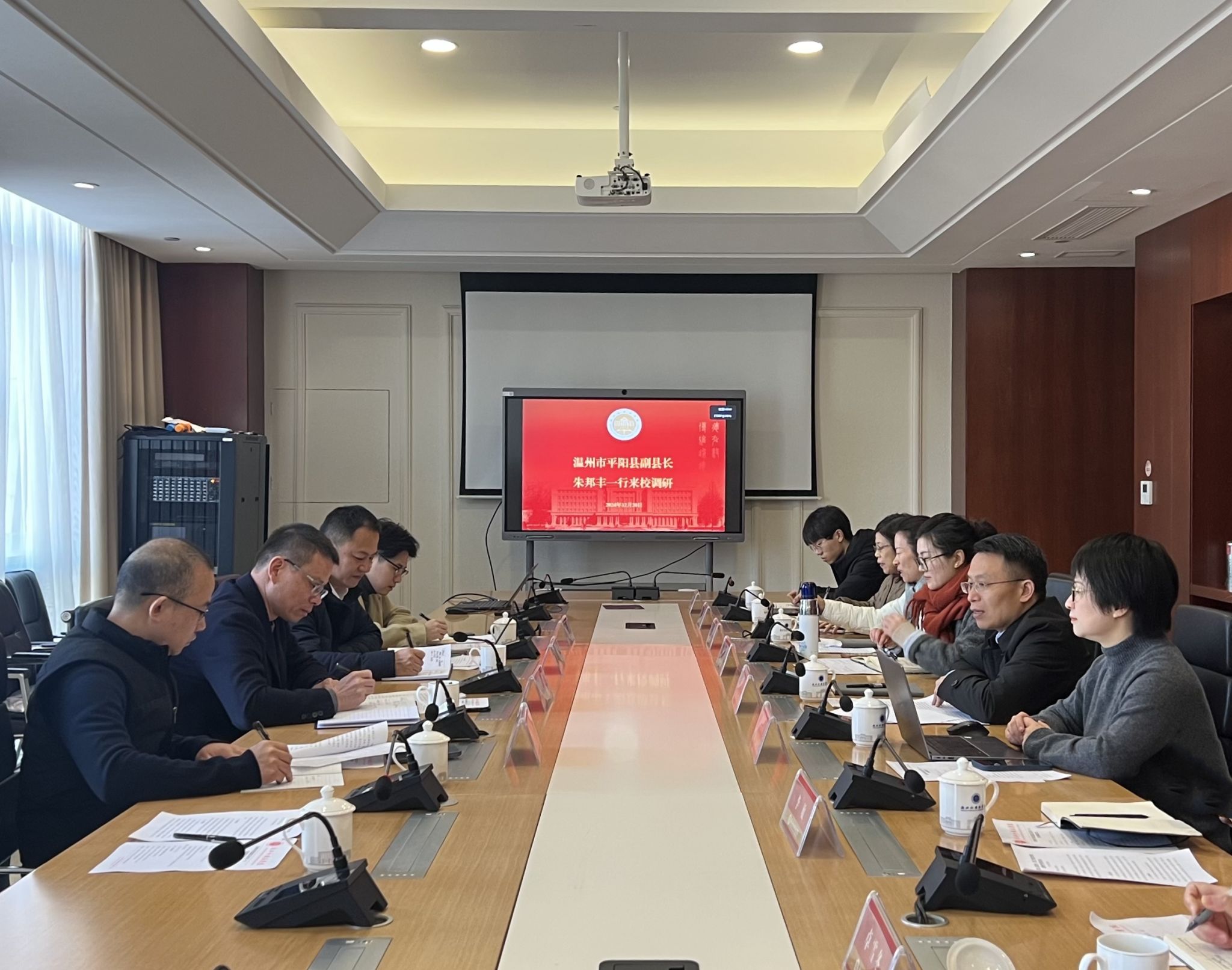 12月20日,平阳县副县长朱邦丰一行来校调研交流。副校长、党委委员毛振华主持座谈会,双方就深化校地合作展开深入探讨。