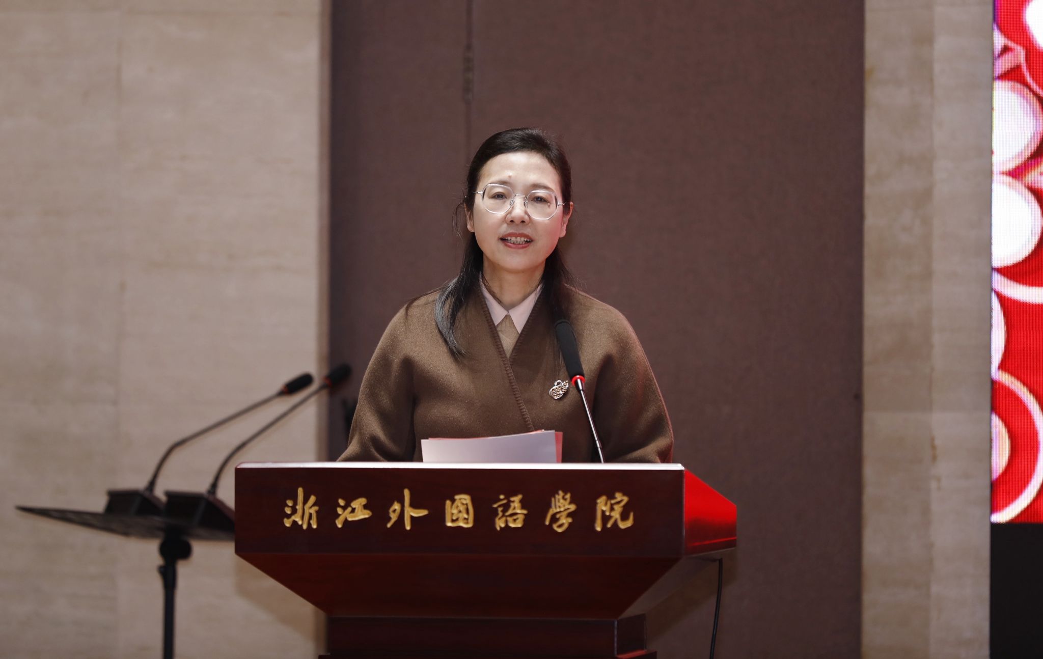 荣休教师邵国强、陆忆松分别作代表发言。“浙外是我们一辈子魂牵梦绕的温暖家园”,他们深情回顾了和浙外共成长的30余载岁月,表达了对学校支持培养的最深敬意和谢意。青年教职工代表胡晶晶、徐伟信在发言中提到,退休教师是浙外的灯塔,前辈们严谨治学的态度、敬业奉献的精神以及对学生无私的关爱,是引领青年教师成长的宝贵财富。