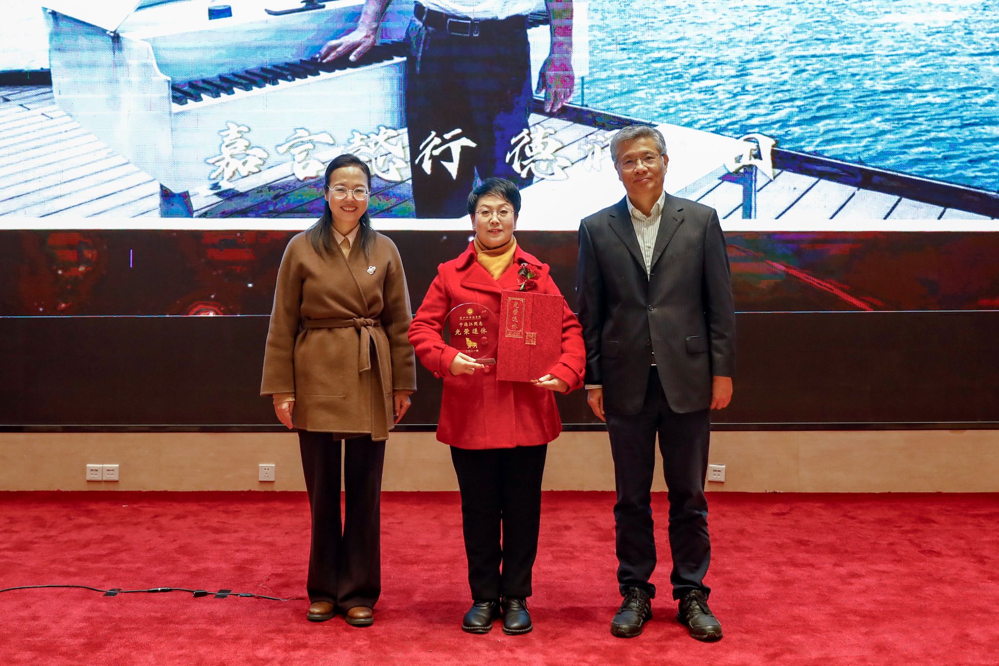 邵国强、陆忆松将印有“闻道中华 语美天下”浙外精神表述语的师德传承旗帜传递给青年教职工代表胡晶晶、徐伟信,寓意一代代浙外人以教育家精神为引领,坚守教育报国初心,勇担铸魂育人使命,赓续和发扬学校办学精神的理想信念和责任担当。