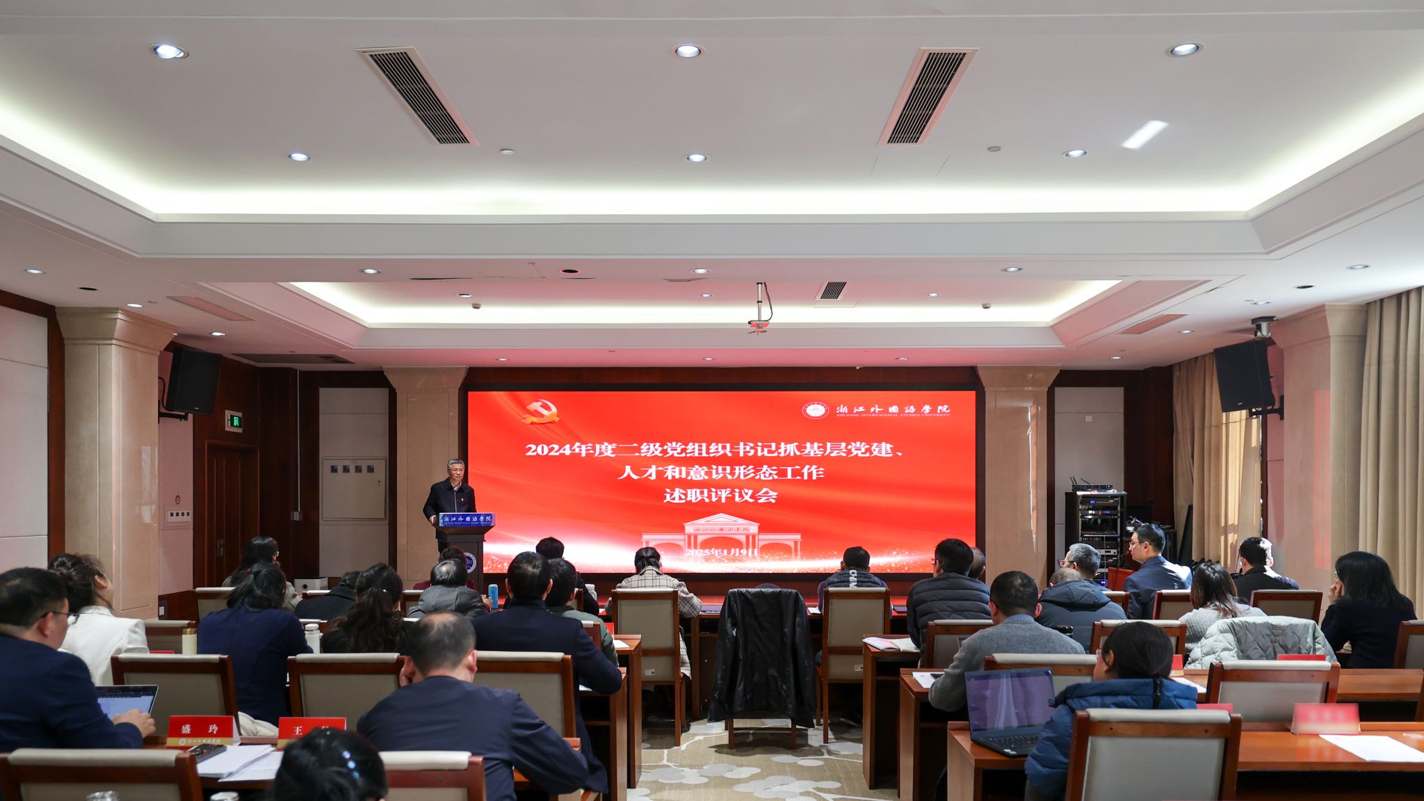 1月9日,学校召开2024年度二级党组织书记抓基层党建、人才和意识形态工作述职评议会。校党委书记宣勇主持会议并作点评讲话,校党政领导班子成员出席会议。