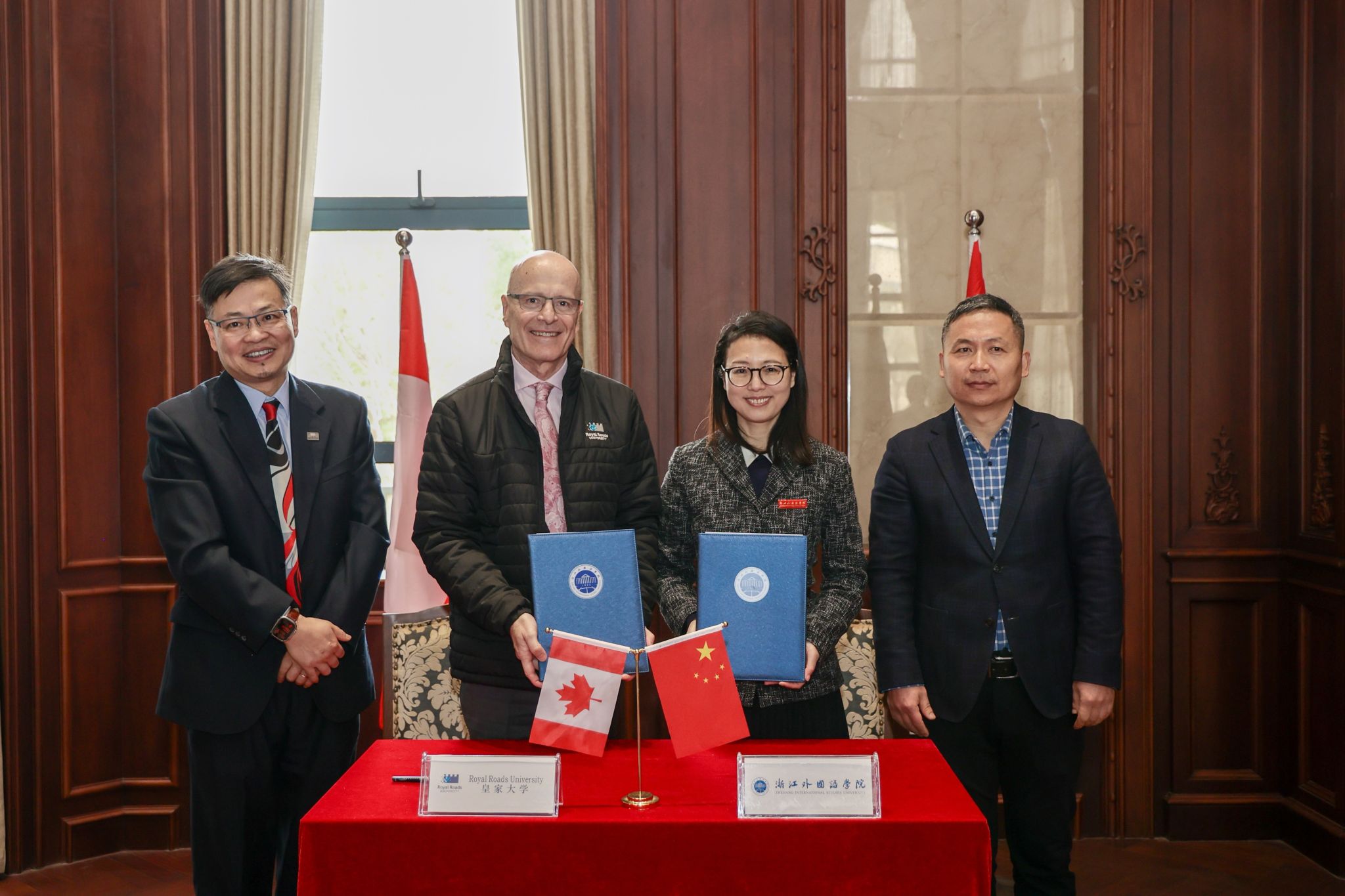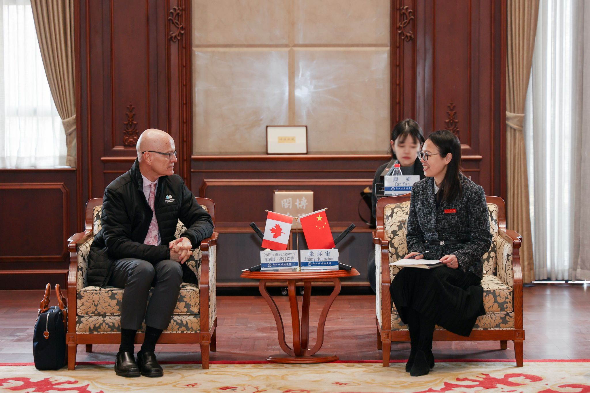 2月26日,校长、党委副书记张环宙会见了加拿大皇家大学校长菲利普・斯汀坎普一行,并签署谅解备忘录和全球战略传播微专业项目合作协议。皇家大学副校长苏珊・吉,开云官网副校长、党委委员柴改英参加活动。