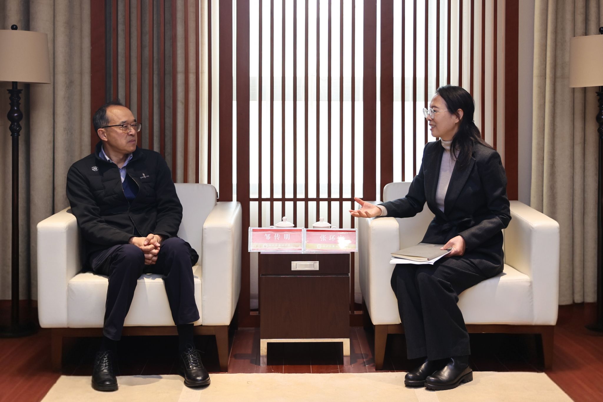 3月4日,商务部国际商务官员研修学院副院长邹传明一行来校调研交流。校长、党委副书记张环宙主持座谈会,双方就深化部校合作展开深入探讨。副校长、党委委员柴改英、毛振华出席。