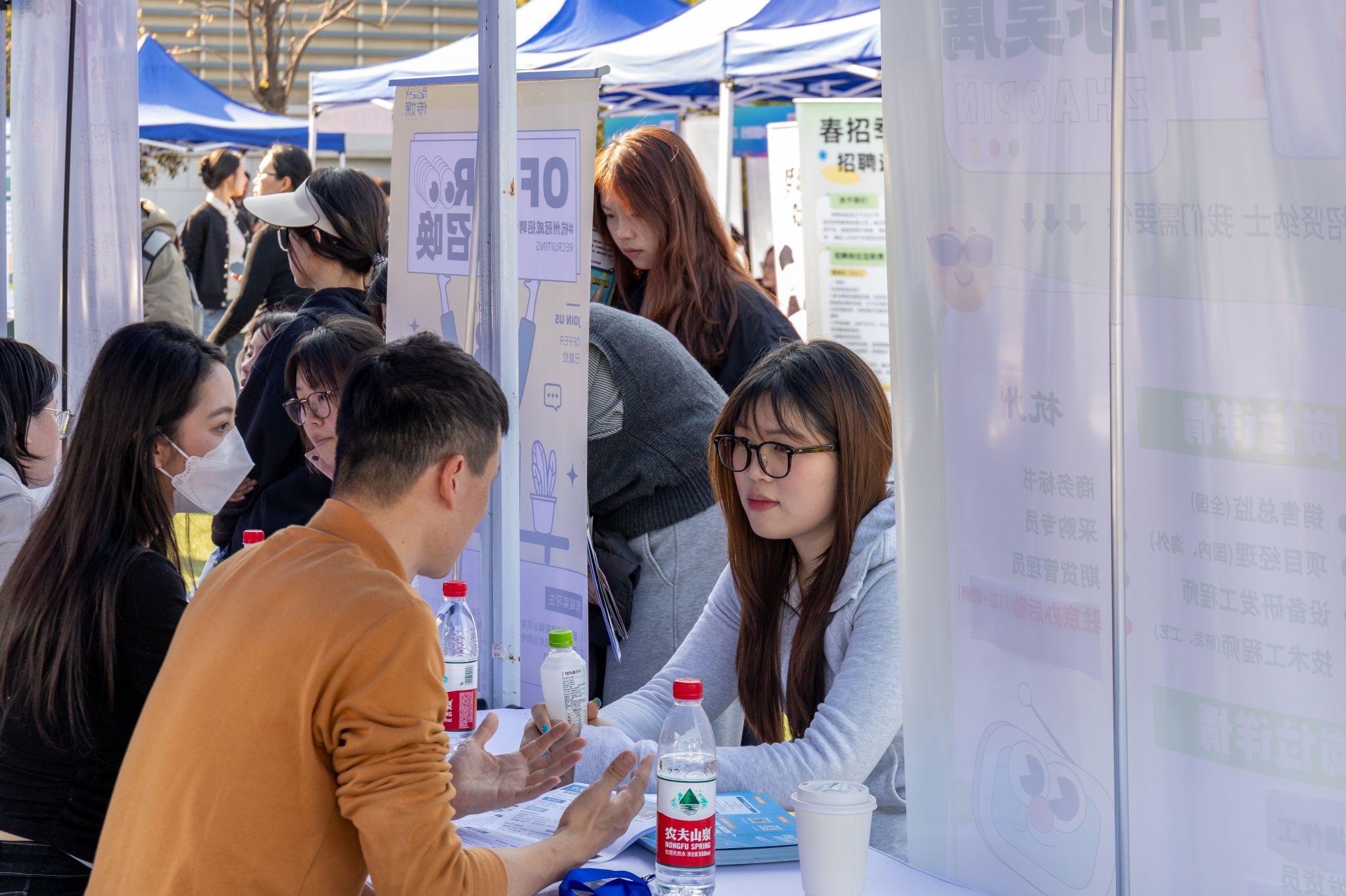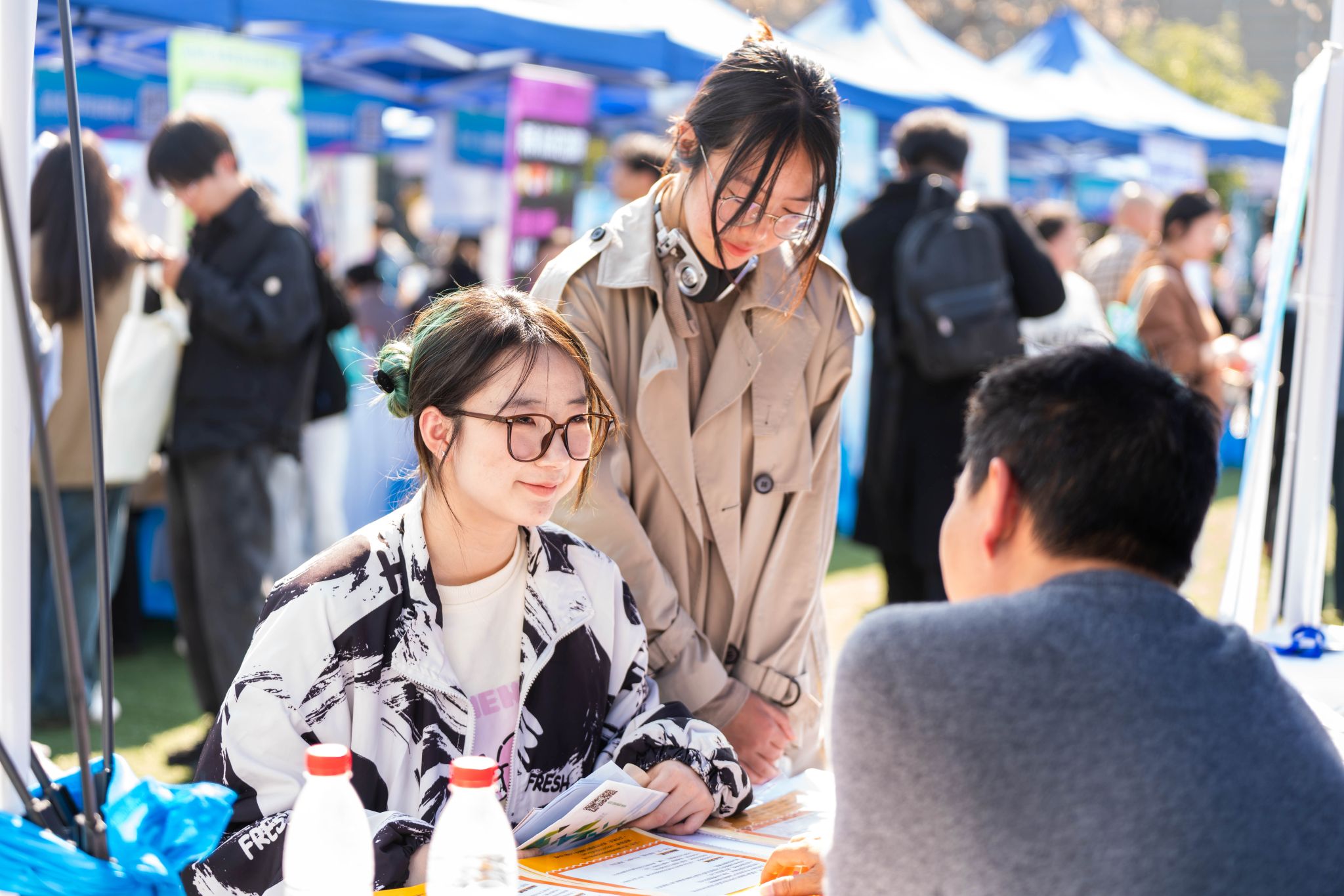 值得一提的是,在浙商出海的时代背景下,本次学校通过企业调研、网络招聘岗位梳理、校内多部门联动等方式,积极联络与组织有海外岗位招聘需求的用人单位,设立了涉海外岗位招聘专区,共报名26家企业,提供海外岗位需求人数252人(岗位73个),物产中大集团、大华股份等有海外用人需求以及多家直接在海外注册公司的优质企业纷纷来校选才用才。“毕业生在海外就业的职业前景光明,我们更要以开放的心态,国际化的视野看待就业前景。”在涉海外岗位招聘专区,张环宙亲切勉励毕业生充分发挥自己的专业优势,立足全球,拥抱世界。