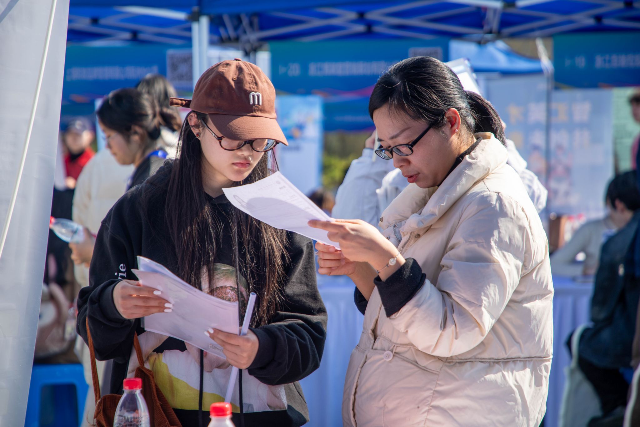 为推动用人就业市场供需双方更高质量更充分对接匹配,学校还点对点与相关县市人社局对接招聘需求,设立起相关县市招聘专区。外贸行业显示度与繁荣度较高的义乌市继续集中组团参会,力促外贸高质量发展、外贸人才需求度激增的江山市在人社局领导直接带队下首次集中参会,仅两地共计有20余家优质企业来校招聘,提供岗位人数300个。
