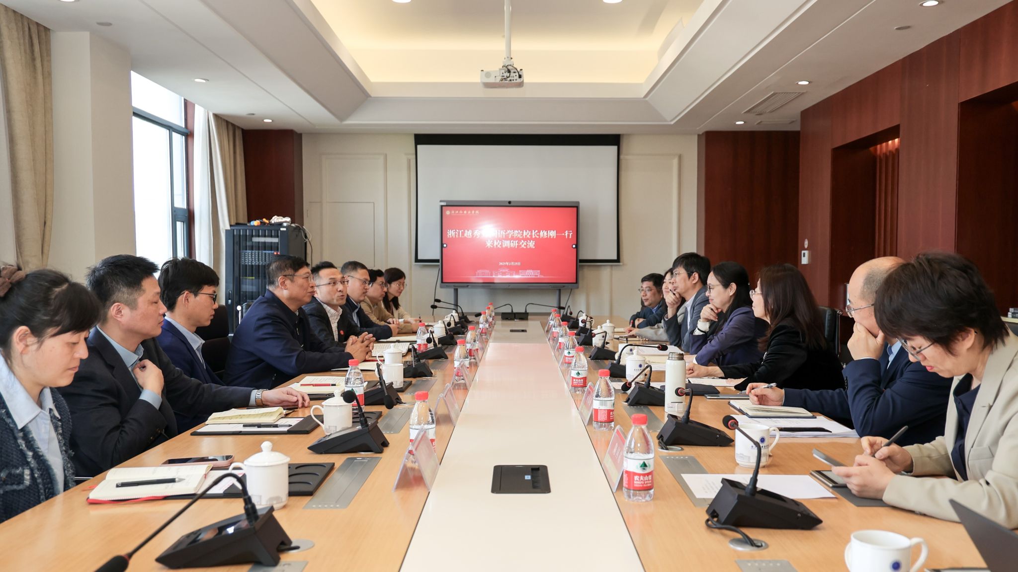 3月25日,浙江越秀外国语学院校长修刚带队来校调研交流。校长、党委副书记张环宙主持召开座谈会,副校长、党委委员柴改英出席座谈。