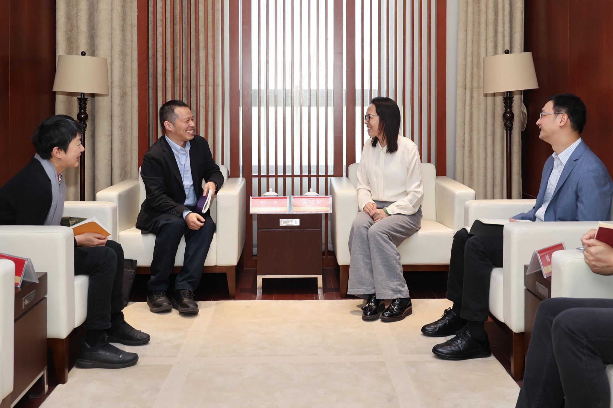 4月14日,浙江省委宣传部出版处处长郑一杰一行来校调研交流。会前,校长、党委副书记张环宙会见了郑一杰一行。张环宙对省委宣传部长期以来对学校事业发展的关心与支持表示感谢,并介绍了学校“三地四域”战略布局的实施情况及取得的特色成效。她指出,学校聚焦外语名校建设,持续优化升级“四大重点发展领域”,全面提升浙外能力。双方还就如何优化资源配置,推动校内出版资源与学科建设深度融合等问题交换了意见。副校长、党委委员姚旻主持座谈会。