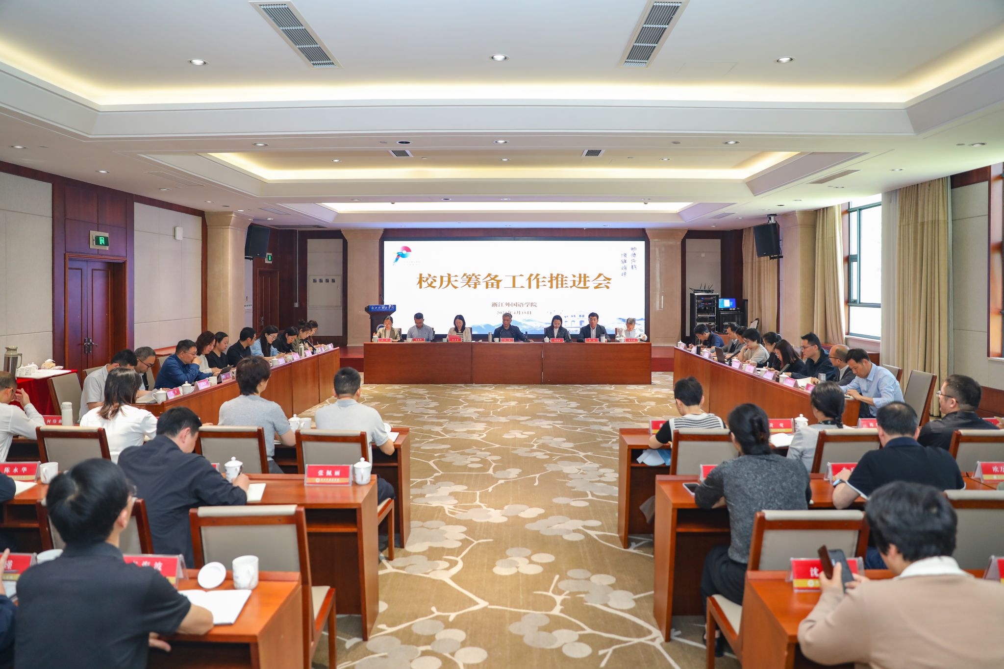 4月18日,学校召开70周年校庆筹备工作推进会,总结交流校庆筹备工作启动以来的工作进展情况,动员部署下一阶段重点任务。校党委书记宣勇出席并讲话,校长、党委副书记张环宙主持。副校长、党委委员柴改英,党委副书记徐勇,副校长、党委委员毛振华,校庆筹备办公室主任赵文波,党委委员、宣传部部长洪明出席会议。