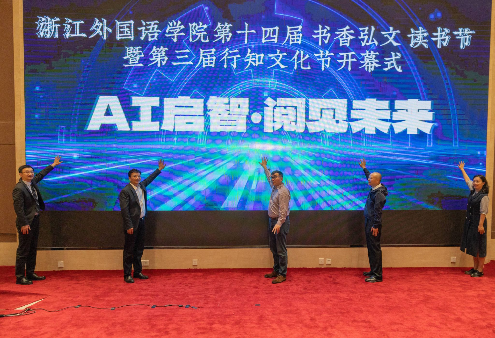 姚旻致开幕辞。他指出,“全民阅读”已上升为国家战略,成为新时代社会文明建设的重要引擎,从倡导到深化,“全民阅读”持续彰显其文化价值。在人工智能迅猛发展的背景下,阅读也面临新的机遇与挑战,我们既要借助AI拓展知识边界,也要坚持“慢阅读”培养深度思考的能力。本次读书节以“AI启智·阅见未来”为主题,将通过阅读报告发布、主题书展、读书征文、“阅读马拉松”等系列活动,引导师生感受科技与人文的融合魅力,以阅读拓展视野、涵养心灵,营造充满智慧与温度的书香校园。