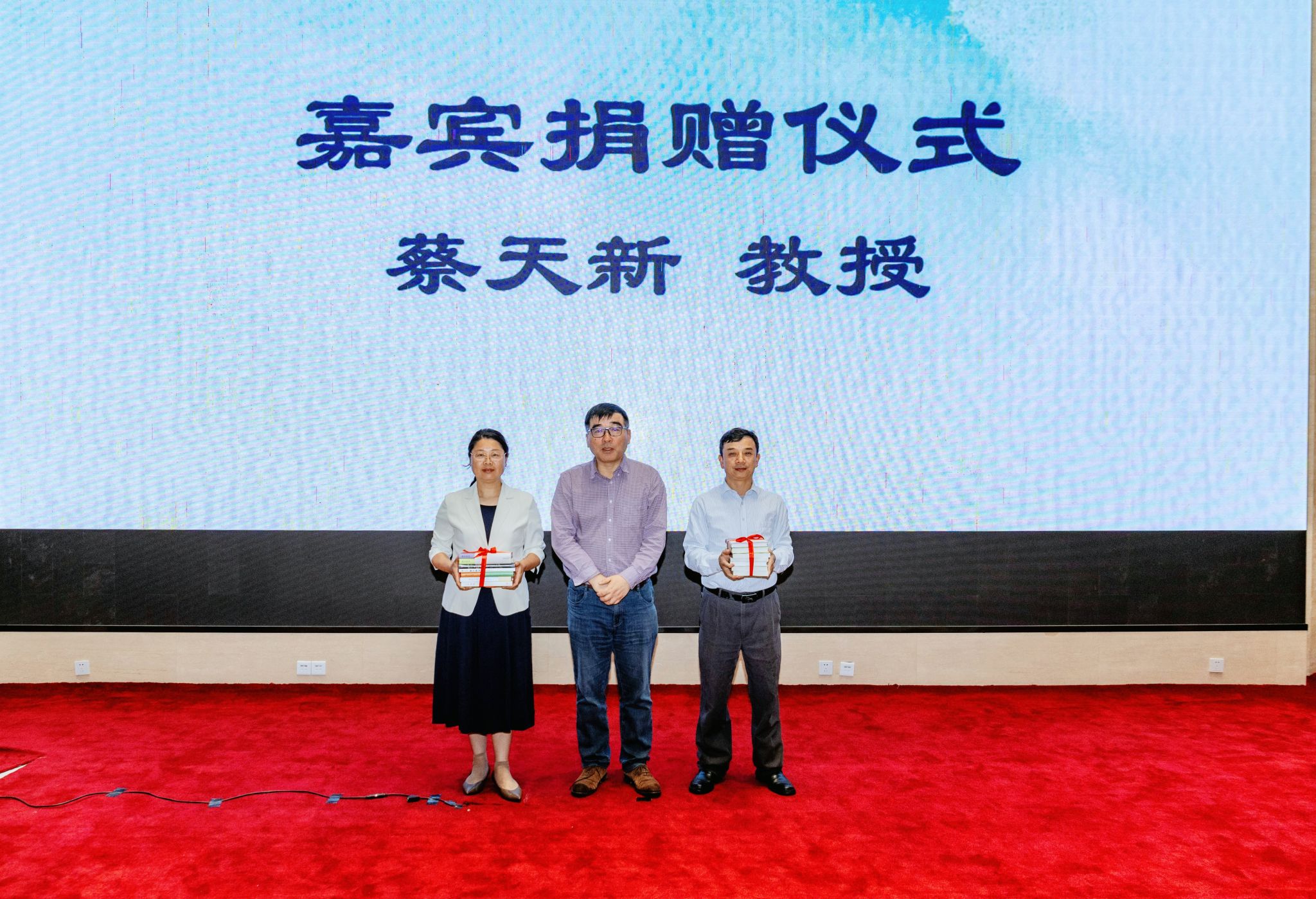 现场举行了博雅阁藏书仪式,教师代表将新出版的著作捐赠于学校博雅阁。洪明向教师代表颁发收藏证书。