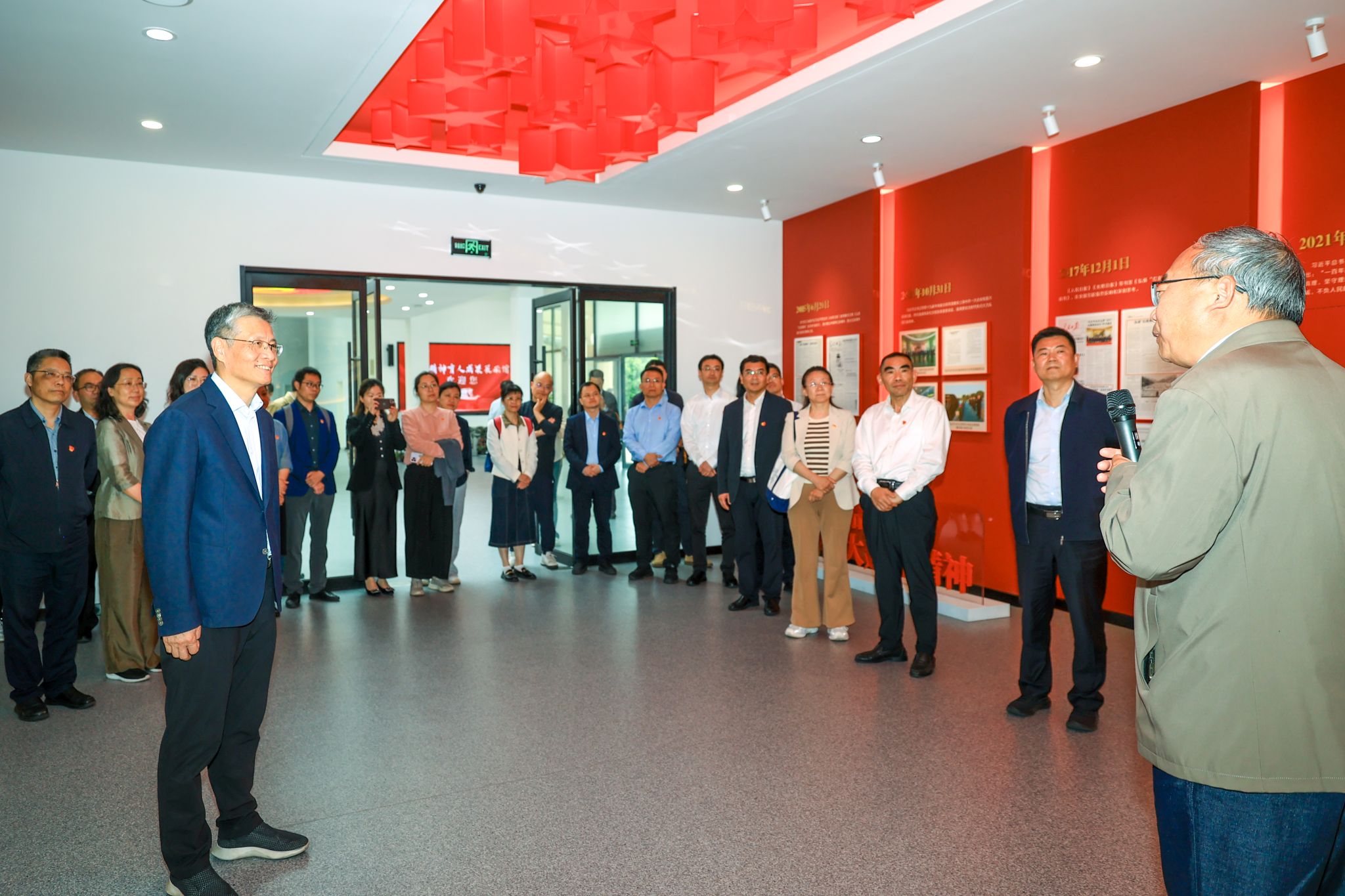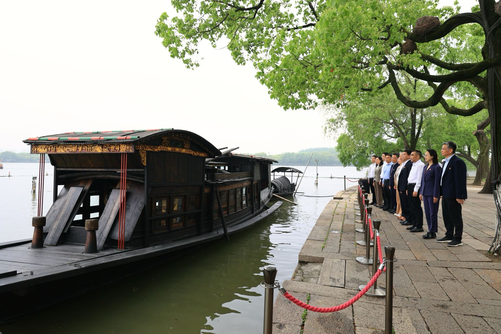 今年是习近平同志在浙江工作期间总结提炼“红船精神”20周年。在嘉兴南湖,党委理论学习中心组一行沿着习近平总书记的足迹先后瞻仰了承载着中国共产党梦想起航的红船,参观了南湖革命纪念馆,在循迹溯源中重温建党历史,感悟红船精神。党委理论学习中心组一行还赴嘉兴大学红船精神育人成果展示馆,邀请该校专家进行“红船精神”现场授课和研讨。