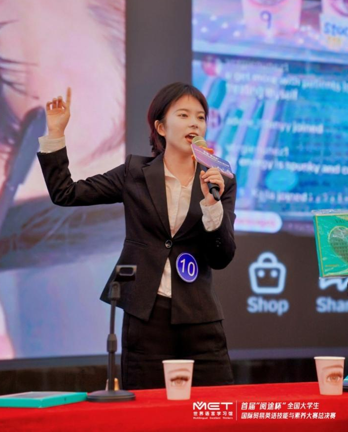“阅途杯”全国大学生国际贸易英语技能与素养大赛由中国国际贸易学会主办,清华大学语言中心等多所高校相关机构联合协办,阅途文化集团承办,旨在落实国家科技人才体制机制一体化政策,提升大学生在国际贸易领域的英语应用能力与综合素质。此次大赛吸引了全国500余所高校、1700余支队伍报名参赛。总决赛现场,本科组、专科组团队选手们在外贸谈判情景模拟、跨境电商直播模拟、商务接待中的中国文化展示等多个命题中展开巅峰对决。