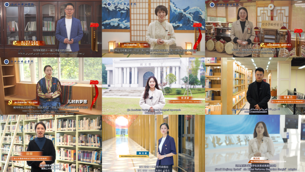 创新打造“多语种+”思政育人品牌,政校行企协同搭建实践育人平台。联合浙江省翻译协会创办浙江省多语种思政笔译大赛,培育形成外语学子讲好中国故事的特色载体。组建多语种宣讲团构筑“行走的思政课”,参与学校“百场党课观照百年”“‘在浙里・知中国’——党的二十大精神宣讲”等主题宣讲9场,推出“多语种思政在线小课堂”40期。