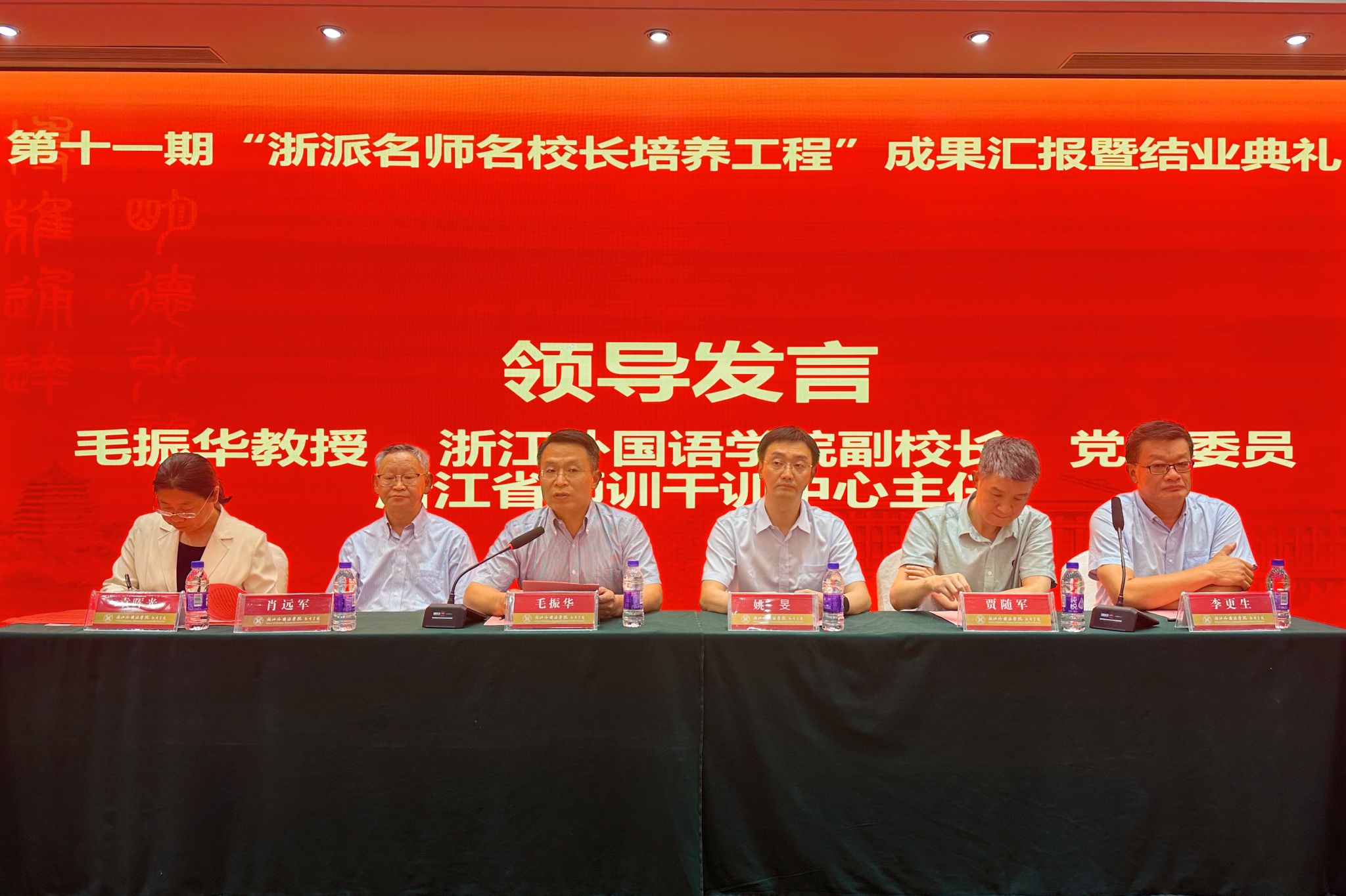 5月30日,浙外举办第十一期“浙派名师名校长培养工程”成果汇报暨结业典礼。副校长、党委委员,浙江省师干训中心主任毛振华出席并讲话,副校长、党委委员姚旻为学员颁发结业证书和优秀学员证书。