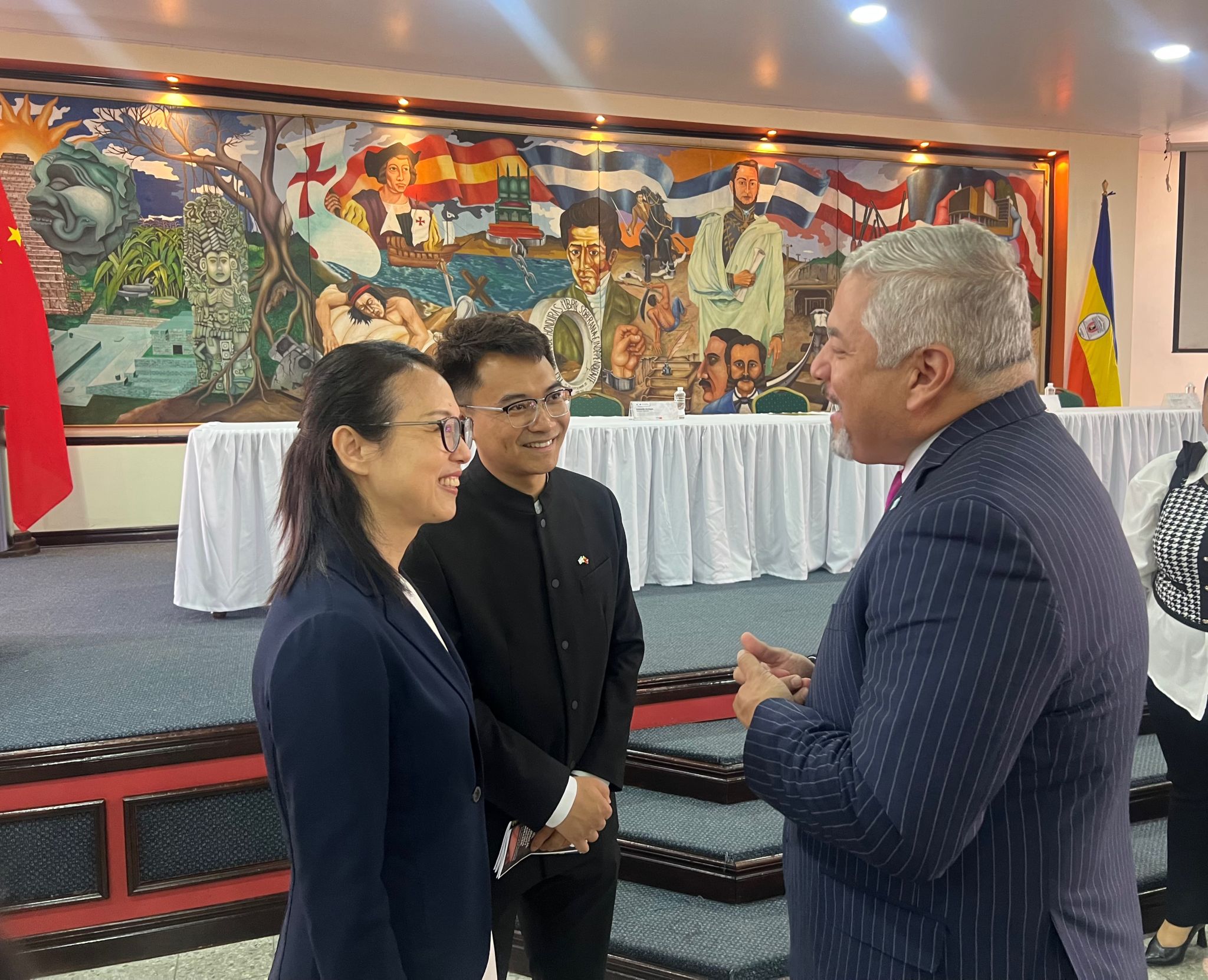 图6:张环宙与洪都拉斯议员阿尔戈纳尔交谈