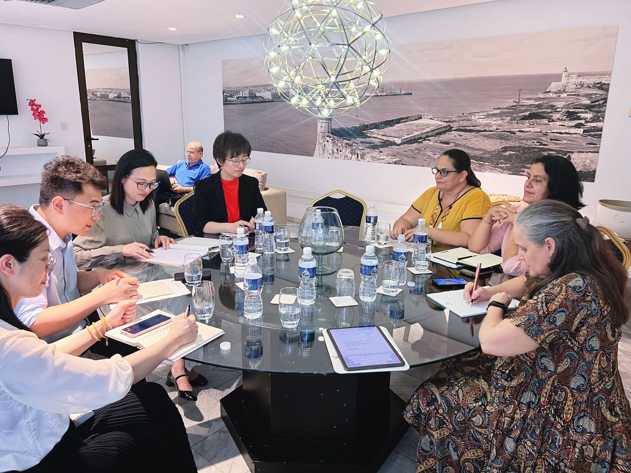 在古巴旅游部,副部长亚米莉・阿尔达马・巴尔德斯、人事司司长约翰尼斯・阿吉拉尔・罗德里格斯和古巴旅游培训学校主要负责人等参加座谈。张环宙指出,中古两国关系历来友好,中国游客对古巴独特的文化、历史和自然风光充满向往,古巴旅游市场潜力巨大。浙外在国际文旅领域深耕多年,积累了丰硕成果,期待两国围绕教育合作、学术合作、产业推广、地方合作等四个维度开展深度协作。