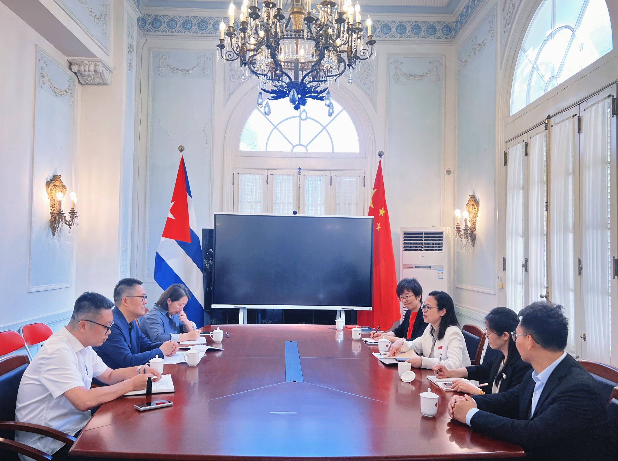 5月27日,代表团一行拜访中国驻古巴大使馆,公使衔参赞张步新充分肯定浙外积极践行“一带一路” 倡议、为中拉文明对话与经贸合作所做的努力。他强调,今年是中古建交65周年,两国关系进入了全新的发展阶段,希望浙外进一步发挥学科特色、拉美研究、出海培训等优势,形成标志性成果,为服务中古中拉整体外交大局积极贡献。