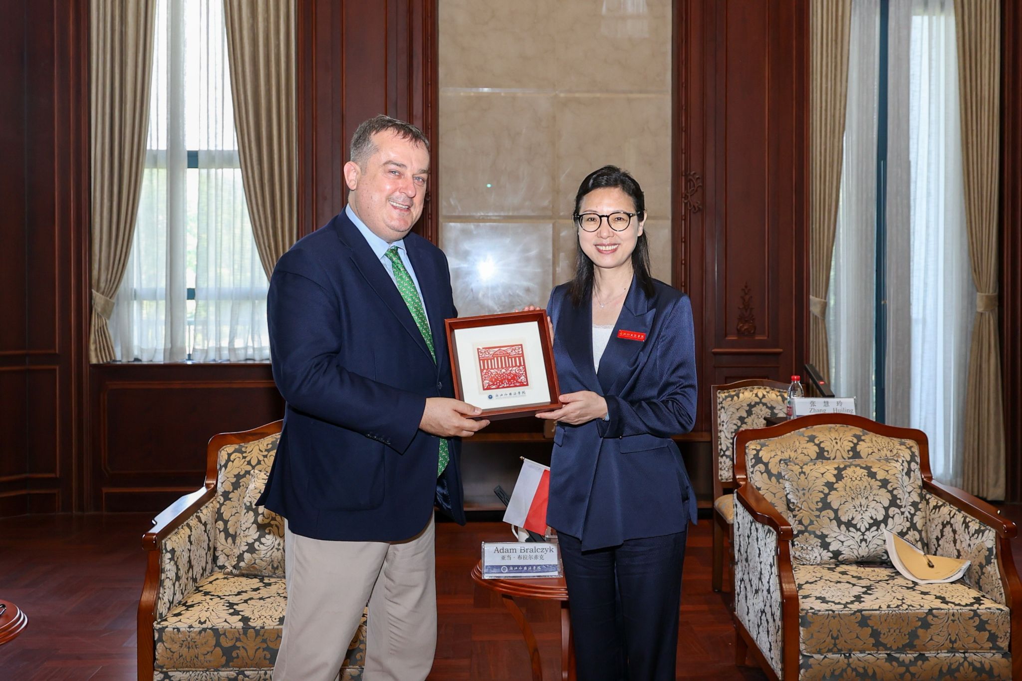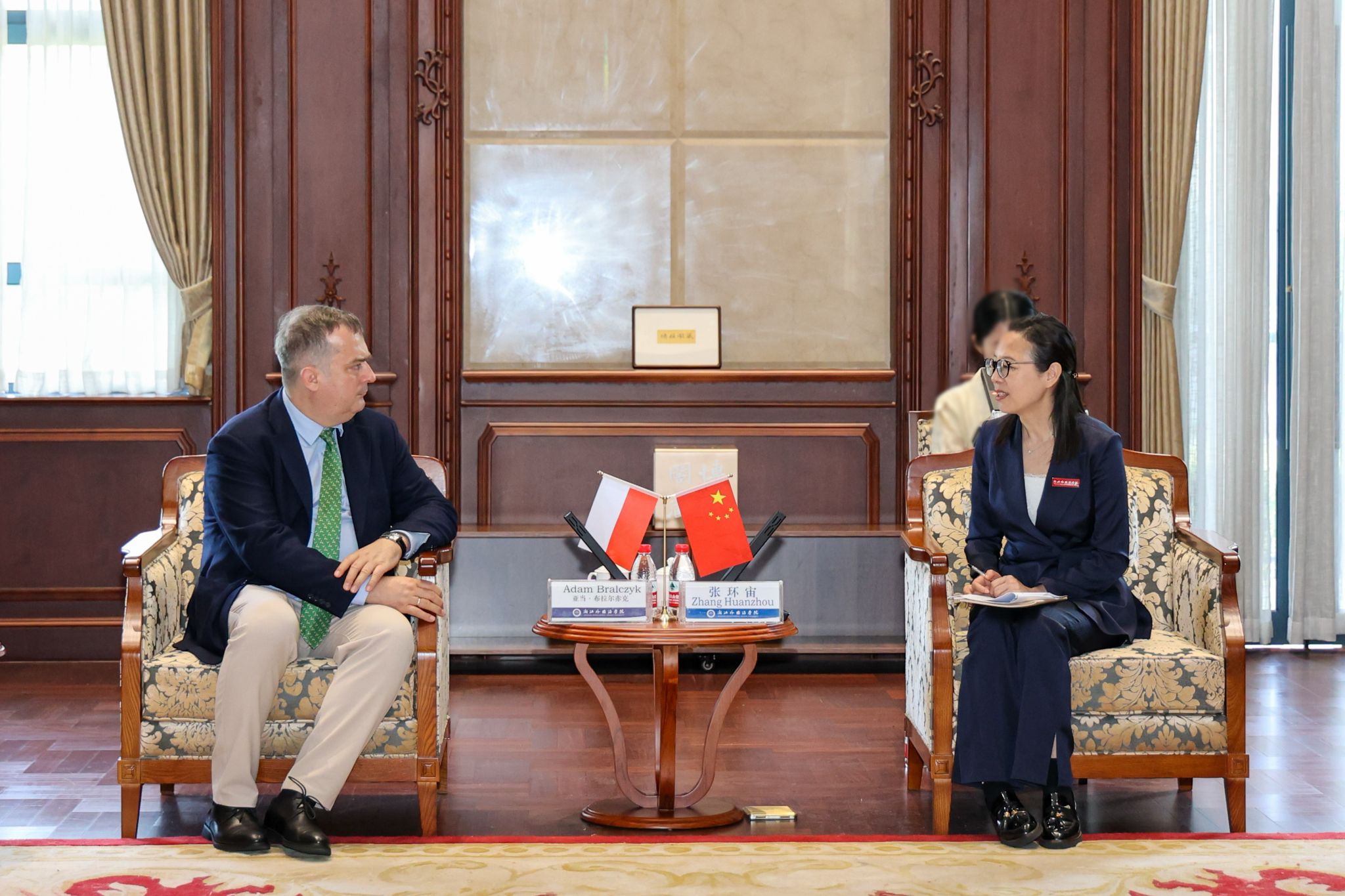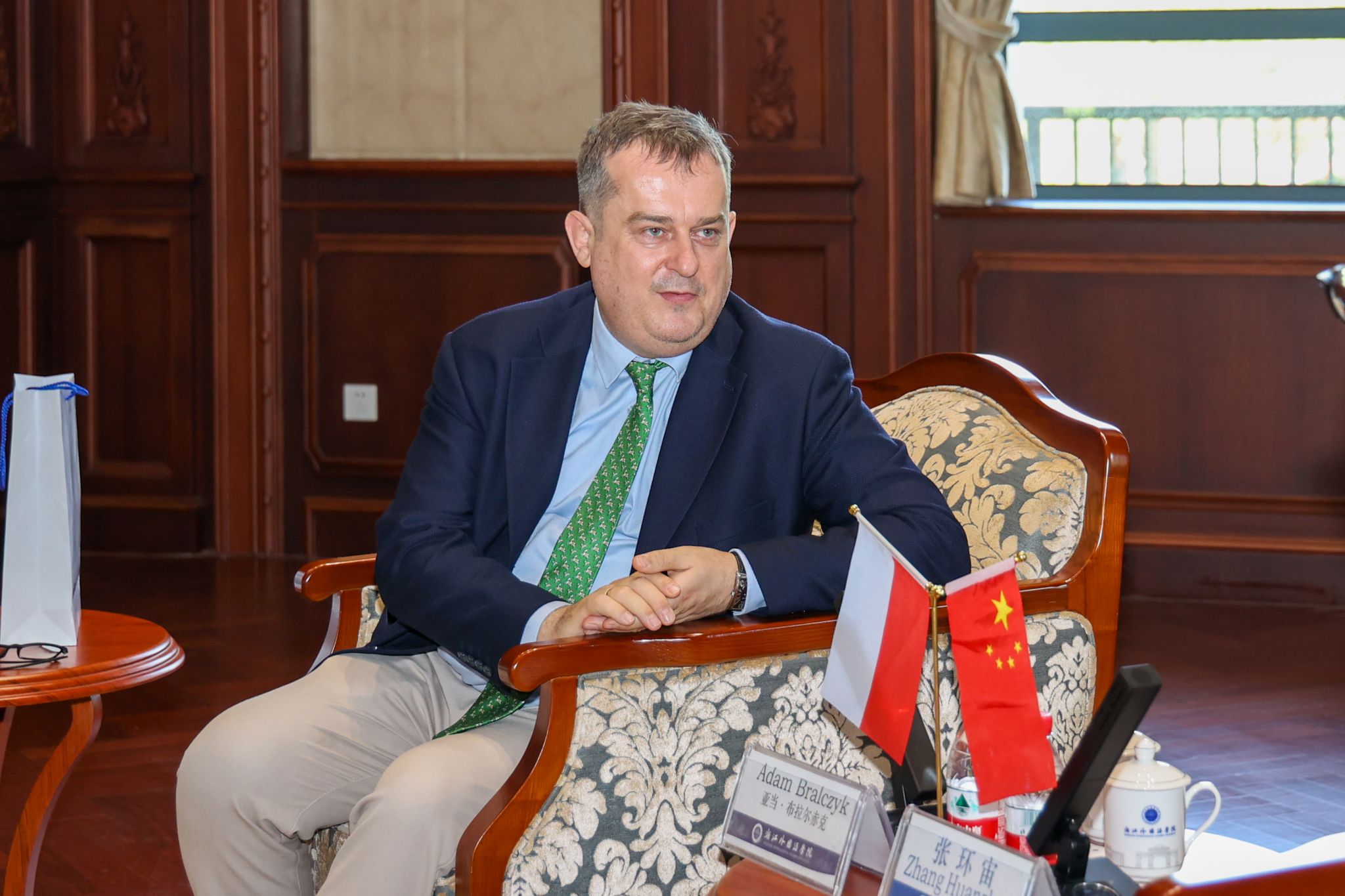 6月5日,波兰驻上海总领事亚当・布拉尔赤克一行访问浙外。校长、党委副书记张环宙主持会谈。