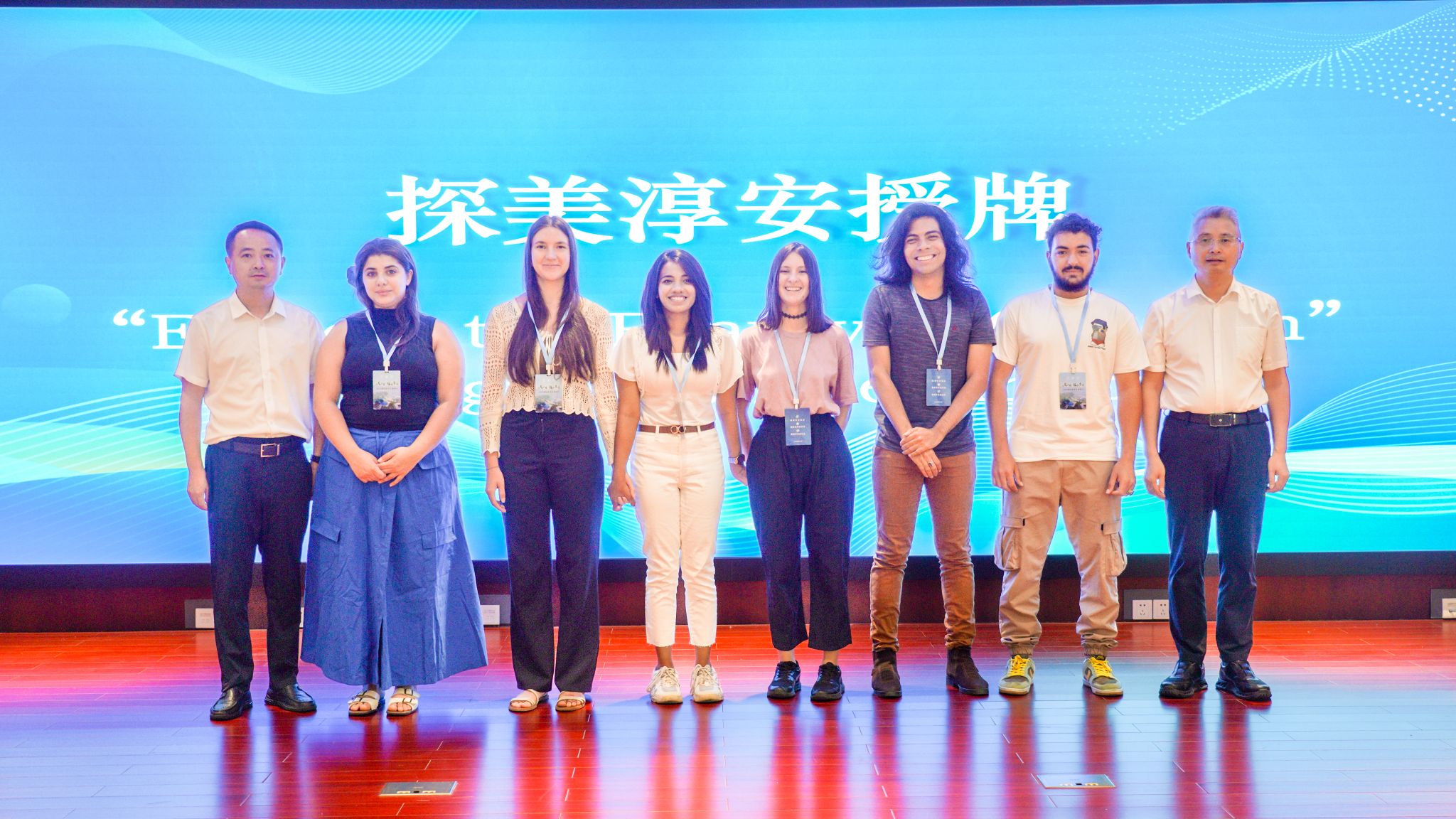 出征仪式在展现千岛湖壮丽风光与淳安人文底蕴的宣传片中拉开序幕。与会领导向留学生代表授予了象征探索之旅的“探美淳安牌”,颁发了“美丽杭州宣传大使”聘书,并为留学生代表授旗出征。现场还举行了kaiyun开云官方国际学生国情教育基地授牌仪式。