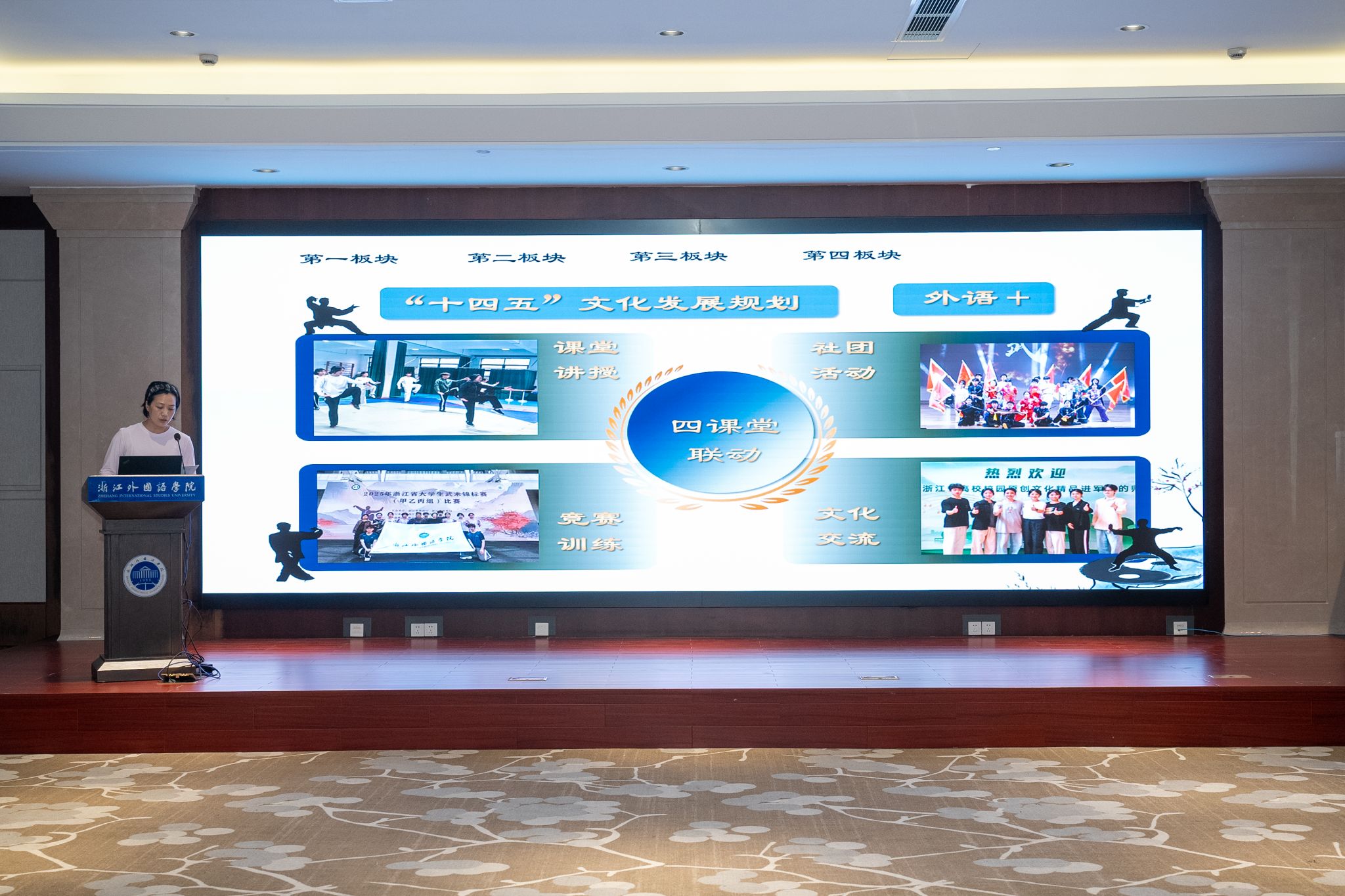 现场,各项目负责人以生动的呈现,全面展示了相应文化品牌的核心理念、特色举措与丰硕成果。各项目立意高远、形式多样,扎根浙外、放眼世界:有的深耕中华优秀传统文化沃土,厚植学生家国情怀;有的持续擦亮国际化底色,拓展学生全球视野;有的充分发挥党员“先锋引领”作用,以头雁精神领航青年奋进;有的借力国际志愿服务,淬炼新时代外语人的价值信仰;有的打造“行走的思政课”,在知行合一中厚植青年担当;有的聚焦跨文化传播,创新讲述中国故事;有的紧扣学生成长需求,将“三全育人”“五育并举”理念融入日常点滴……这些各具特色、卓有成效的项目绽放出蓬勃的校园文化活力与育人华彩。