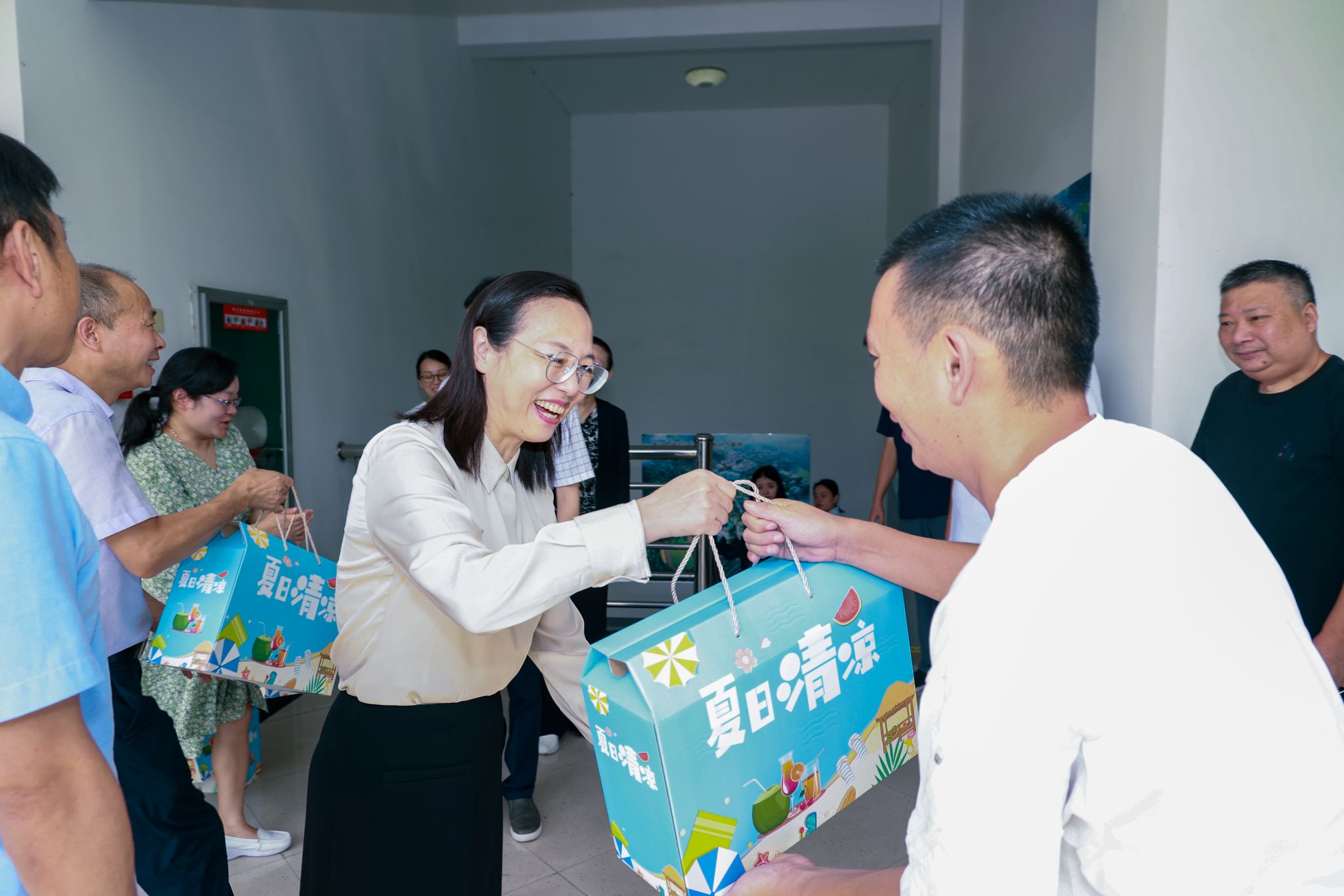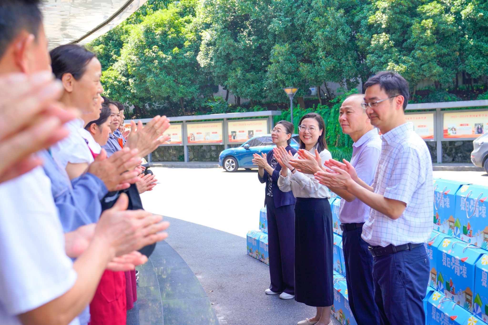 “感谢大家战酷暑,守岗位。你们为学校提供了坚实的基础保障,师生们心里都惦记着你们。祝愿大家健康幸福地工作五十年!”在后勤服务中心,张环宙笑着给大家鼓劲。