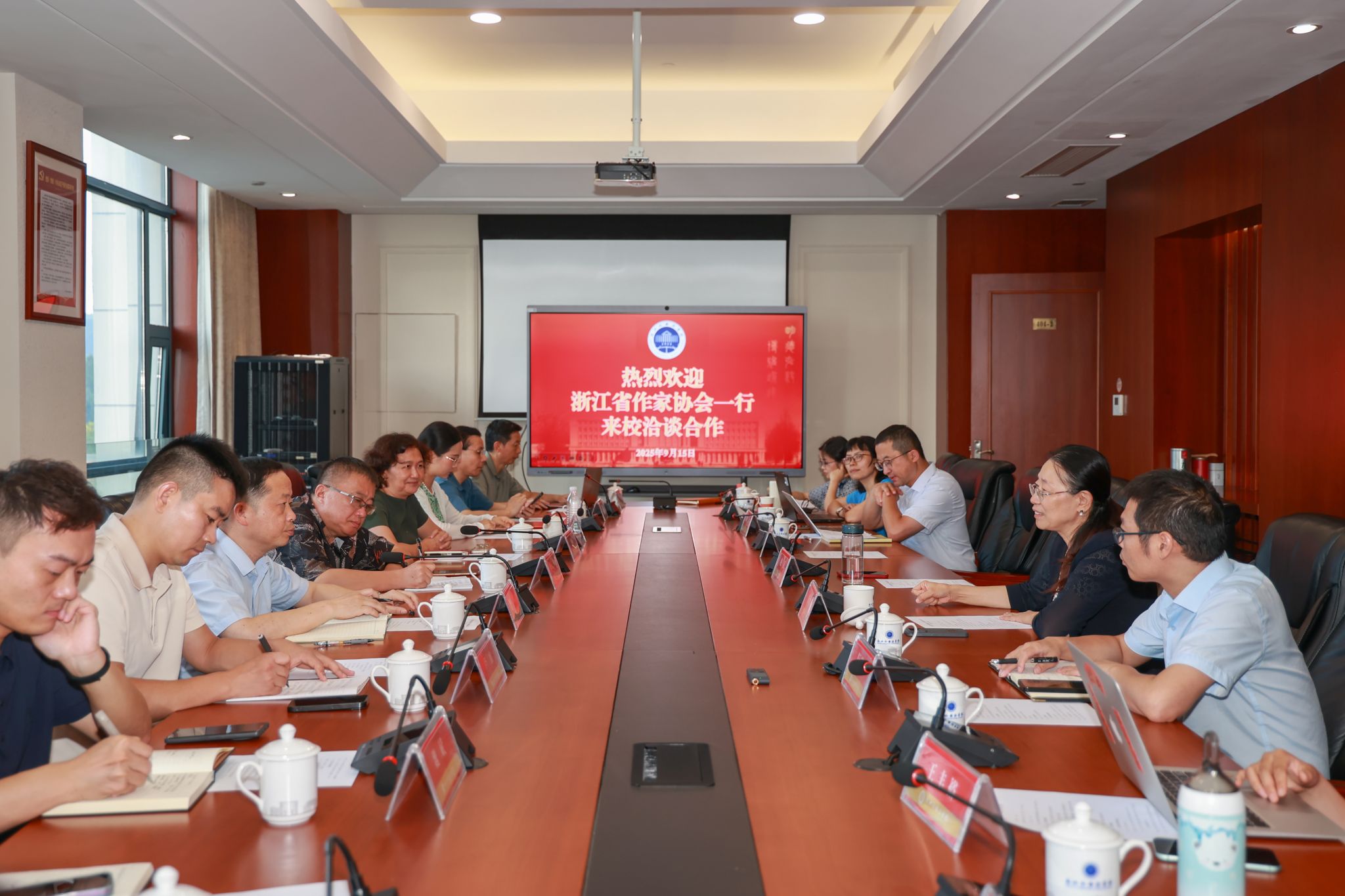 9月15日,浙江省作家协会党组书记叶彤一行来校调研交流。会前,校党委书记、校长张环宙会见了叶彤一行,就拓展中国文学国际传播路径等交流了意见。党委委员、副校长柴改英主持座谈会。