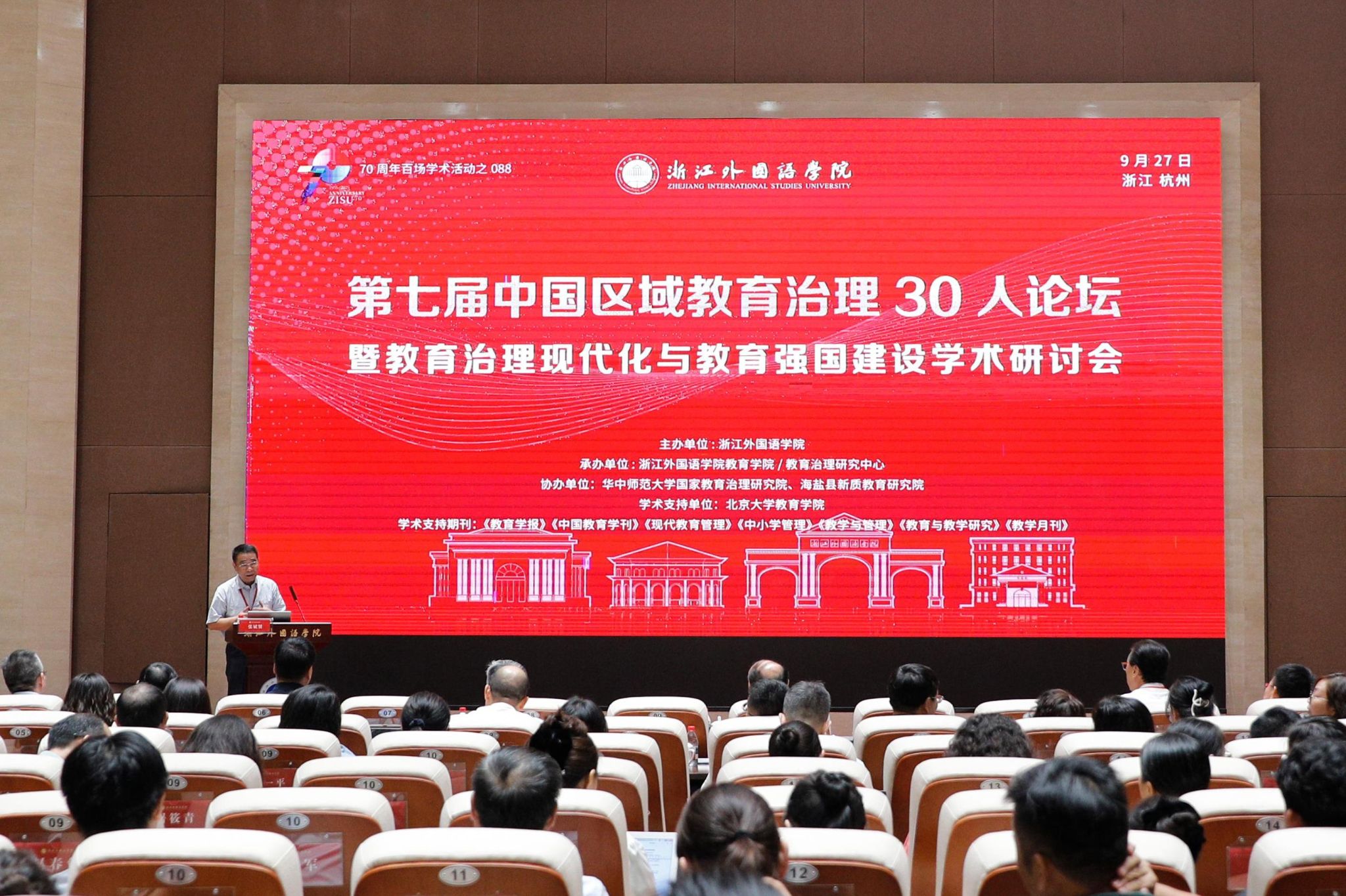 9月27日,第七届中国区域教育治理30人论坛暨教育治理现代化与教育强国建设学术研讨会在浙外召开。本次会议也是迎接学校建校70周年系列学术活动之一。