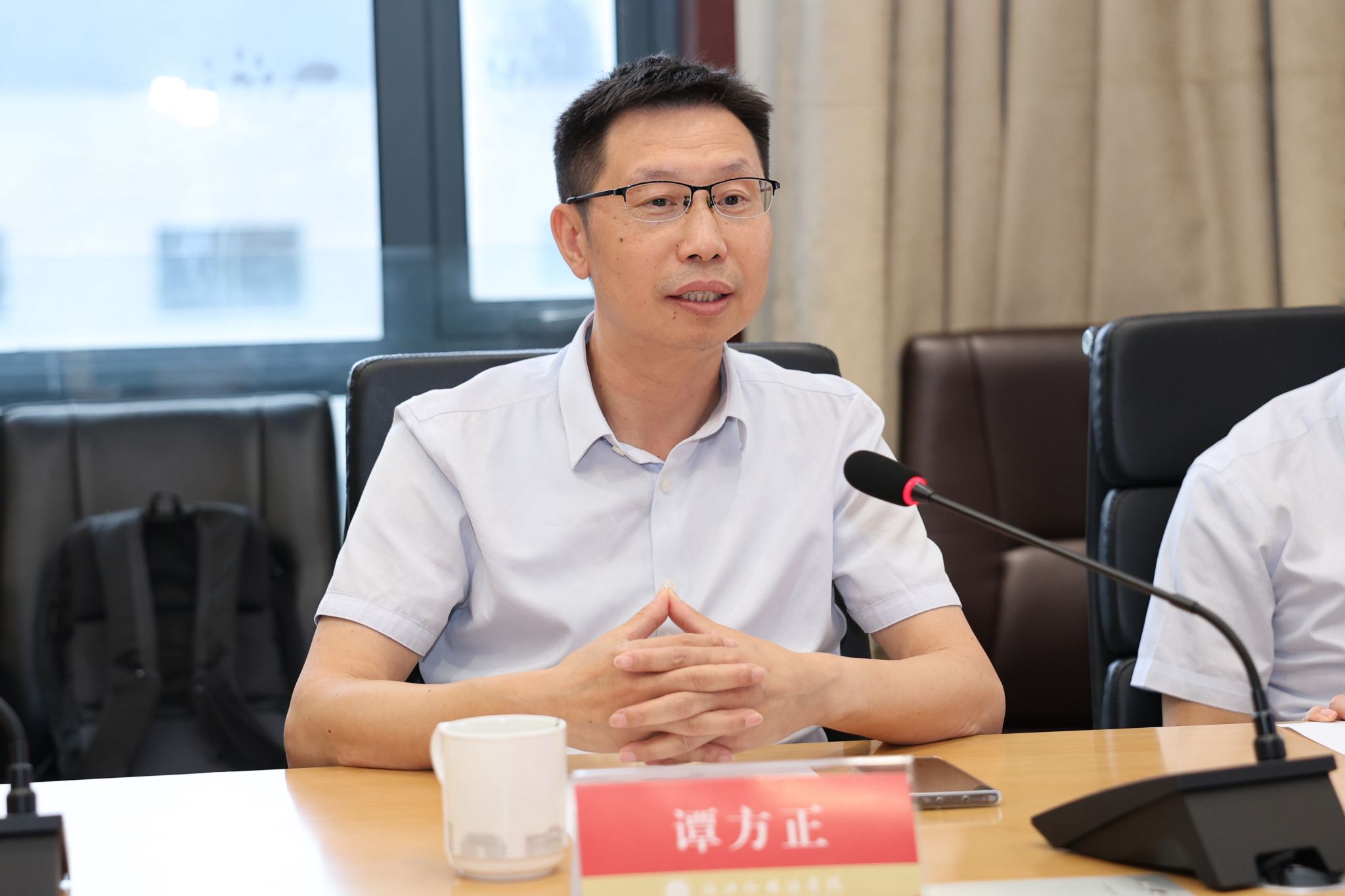 日前,高等教育出版社党委副书记、总编辑谭方正一行来校调研交流。校党委书记、校长张环宙出席座谈会,副校长、党委委员柴改英主持。