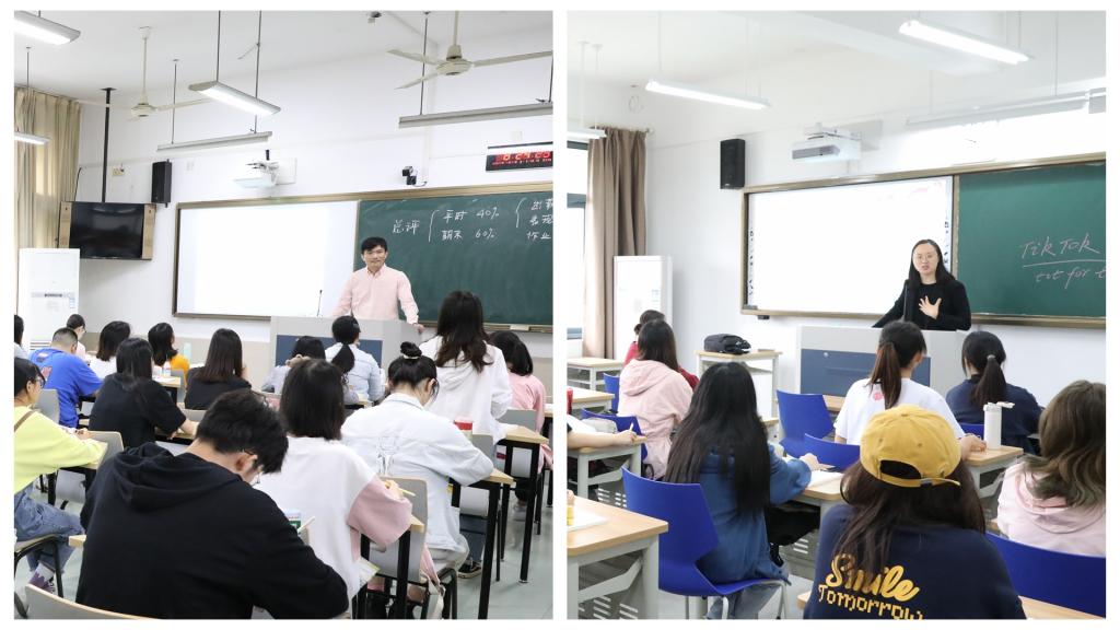 在融院A306,洪岗听取了英文学院赵歆老师讲授的《综合商务英语3》课程。‘What is the outline of and the requirements for this course?’‘to use common sense and previous knowledge to understand the lead-in questions in Text A. ’ 课上,赵老师系统地介绍了该课程的内容、要求、进度、特色等。