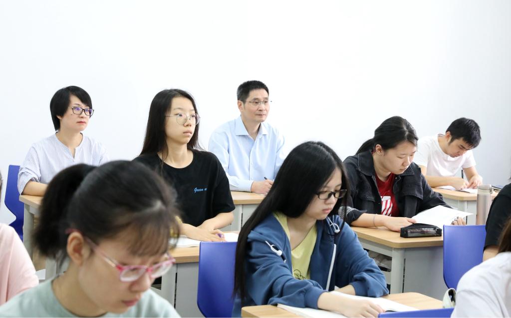 宣勇听得聚精凝神,并在课后与授课教师进行了亲切交流,对教师的教学态度、教学准备、授课效果给予肯定。“有无团队一起在做金融风险管理?有没有产生实际成果?”围绕课程实验、论文发表等方面,宣勇对青年教师的发展表示了关切。