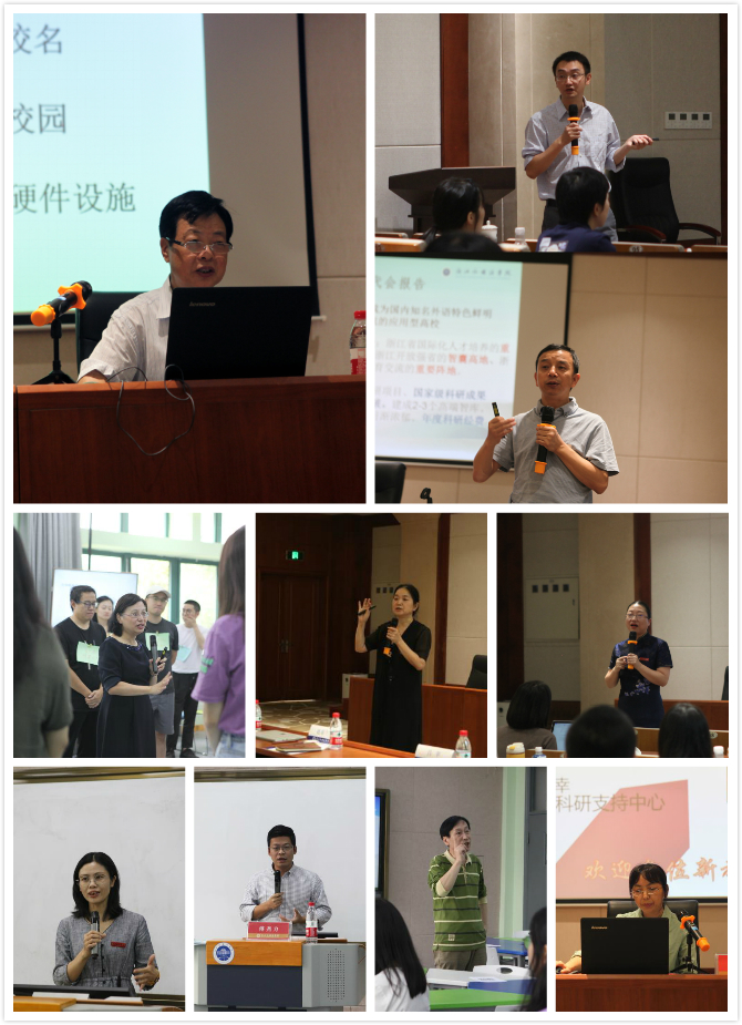 国别与区域研究中心主任周烈为新教师带来了题为《浙外人的责任与担当》讲座。周烈从自强不息、艰苦奋斗、凝气聚力抓外语学科等从五方面来陈述问题和挑战,勉励新教师共同为学校发展和浙江建设做出贡献。集中研习中,高亚兵教授的《教师自我成长团队活动》、吴卫东教授的《认识你自己,成为卓越大学教师》、蒋志萍教授的《激发教学潜能、感悟教学之道》、谢铄老师的《最美课堂声音》讲座,帮助新教师们更加认识自我、融入团队,树立教学自信,正确开启育人生涯;教务处、科研处、学生处、图书馆等相关负责人分别为新教师带来了浙外教学、科研和学情方面的专场讲座,人事处、财务处、国际处、实验中心、资产处、信建处、保卫处、后勤等相关职能部门负责人也与新教师面对面,介绍部门资源,给予服务承诺。