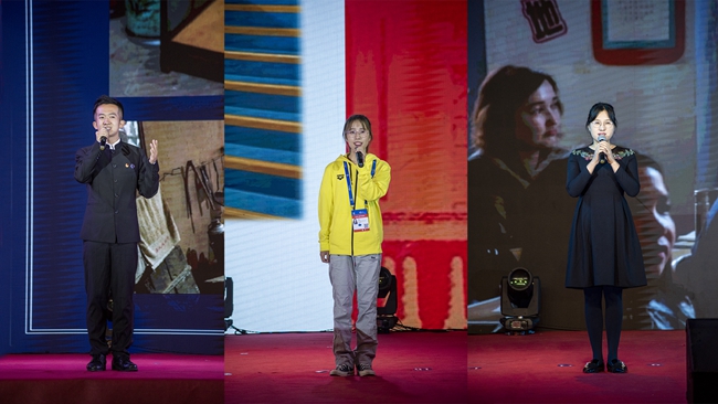 学生代表艺术学院叶俊杰、东语学院王秀蓉、教师代表中文学院顾大朋分享学习教育感悟