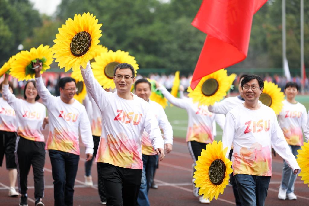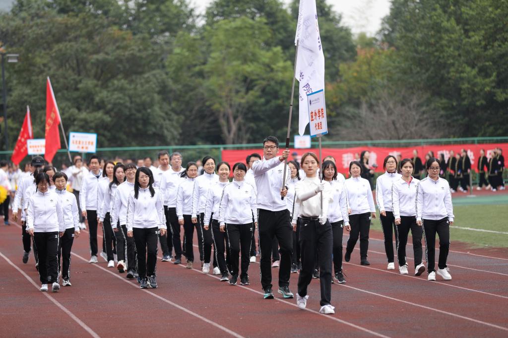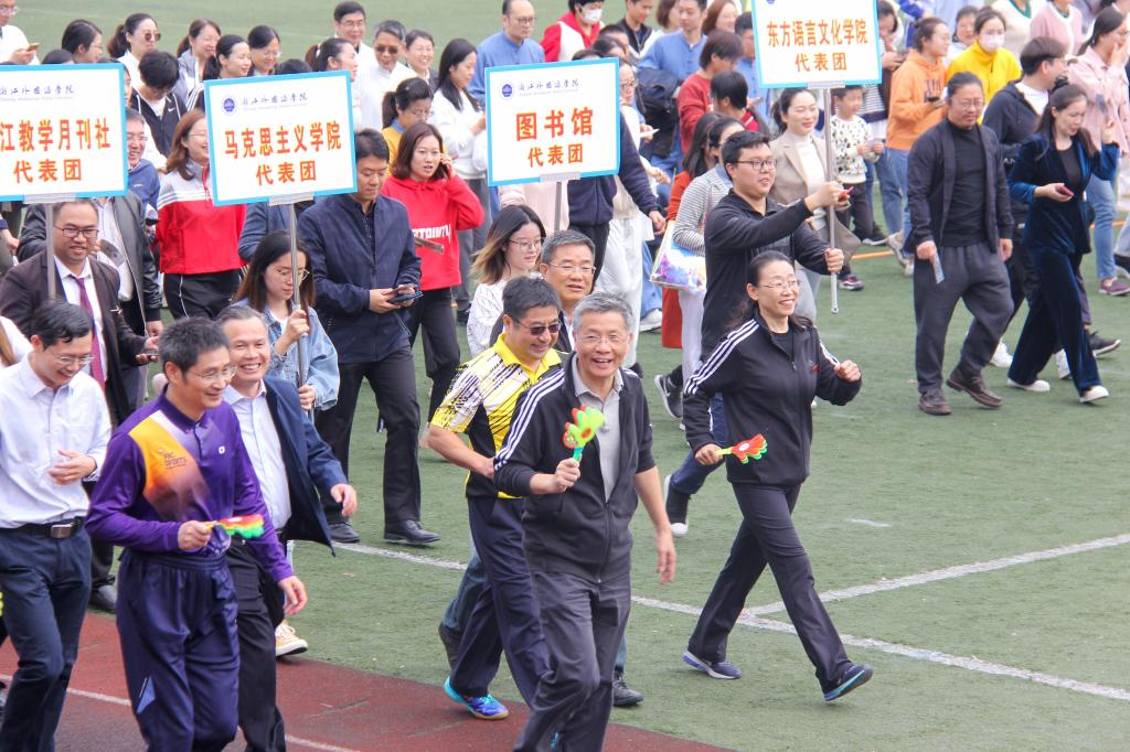 开幕式后,宣勇、洪岗等校党政领导班子带领全校教职工开展了健步走活动,以实际行动支持学校体育工作,倡导体育精神。