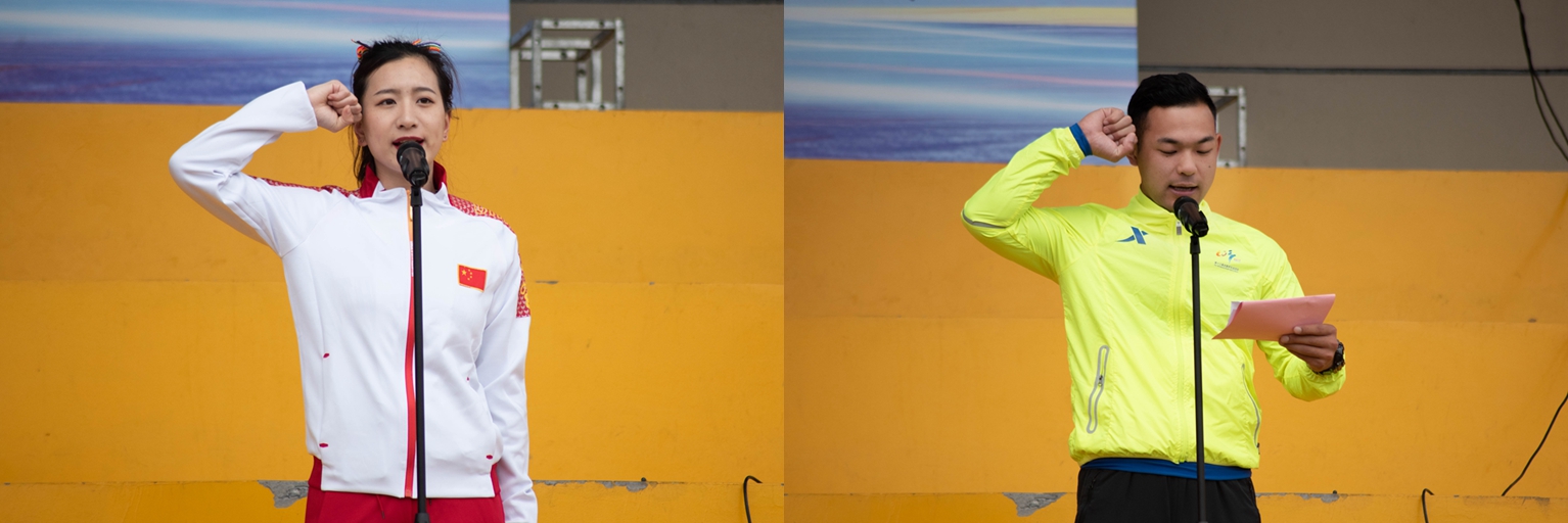 随后,运动员余漪莎同学代表全体运动员宣誓;裁判员郑少邦老师代表全体裁判员宣誓。