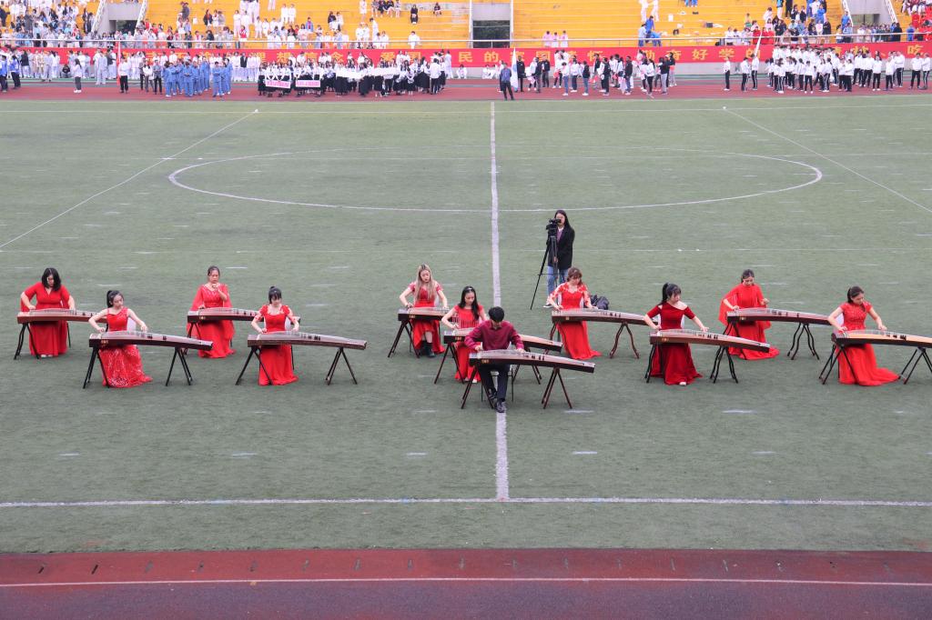 开幕式伊始,艺术学院“艺外弦声”筝乐团带来一首古筝重奏协奏曲《黄河》,以其波澜壮阔之势为整个开幕式奠定了基调。国旗队、校旗队、会旗队的队员们个个昂首挺胸、英姿飒爽,浙外人的拼搏进取在他们的身上展现得淋漓尽致。彩旗队,志愿者和裁判员代表队陆续入场,一面面鲜艳的彩旗,裁判员们手中的秒表和量尺,志愿者手上可爱的皮卡丘,无不表达着浙外师生的青春活力。