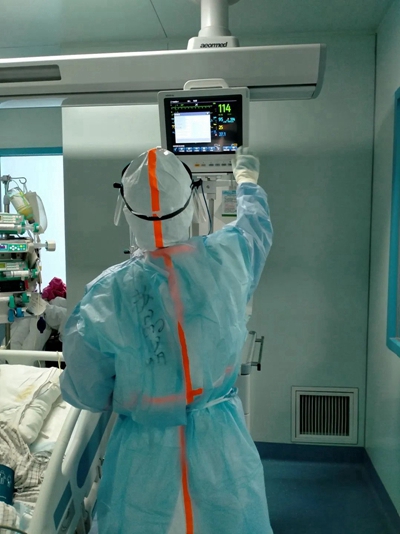 回想过去这段日子,困难重重、挑战巨大,他向大家分享了在ICU病房救治的第一个病人,当时病人的情况十分危急,需要紧急插管,王国彬医生和同伴冒着极可能被感染的风险,积极对患者进行抢救。目前这位患者健康状况良好,即将出院。