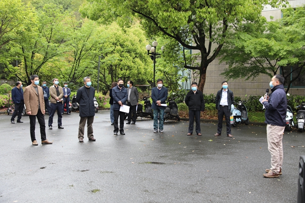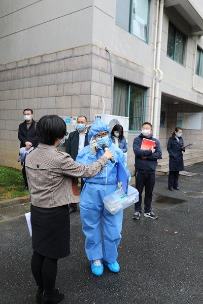 学校疫情防控工作领导小组组长、校党委书记宣勇,疫情防控工作领导小组组长、校长洪岗到现场观摩指导,校党政领导班子成员一同观摩。学校疫情防控工作领导小组副组长、应急演练总指挥、校党委副书记赵文波主持培训与演练。学校疫情防控工作领导小组副组长、应急演练总指挥、副校长赵庆荣介绍演练流程及相关情况。留下街道党工委委员叶鸿志、街道人大工委副主任袁长华到校指导。