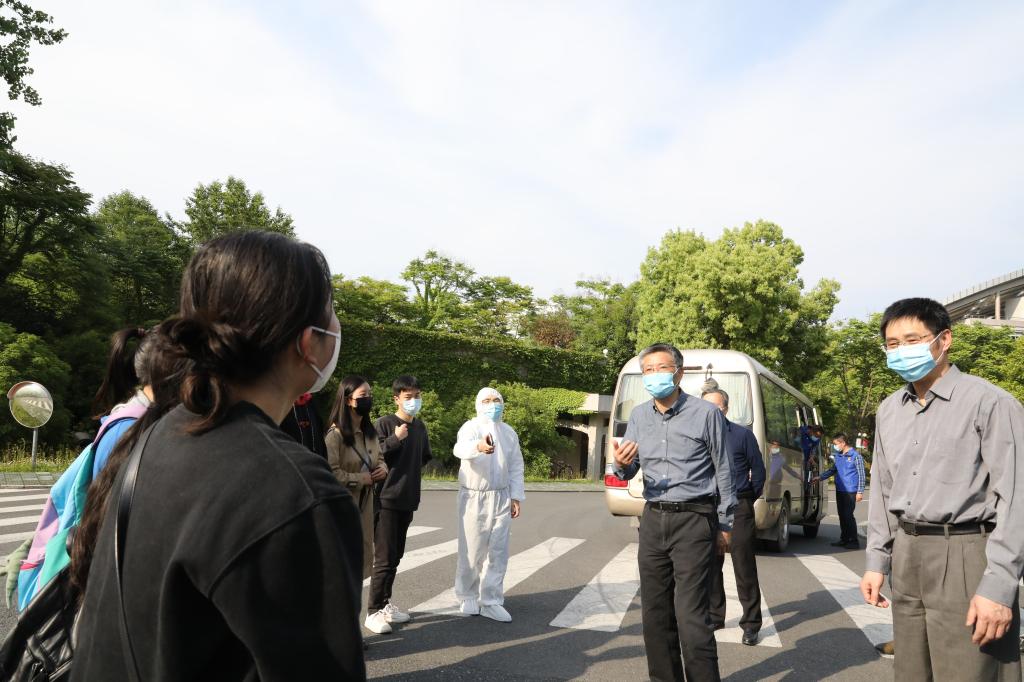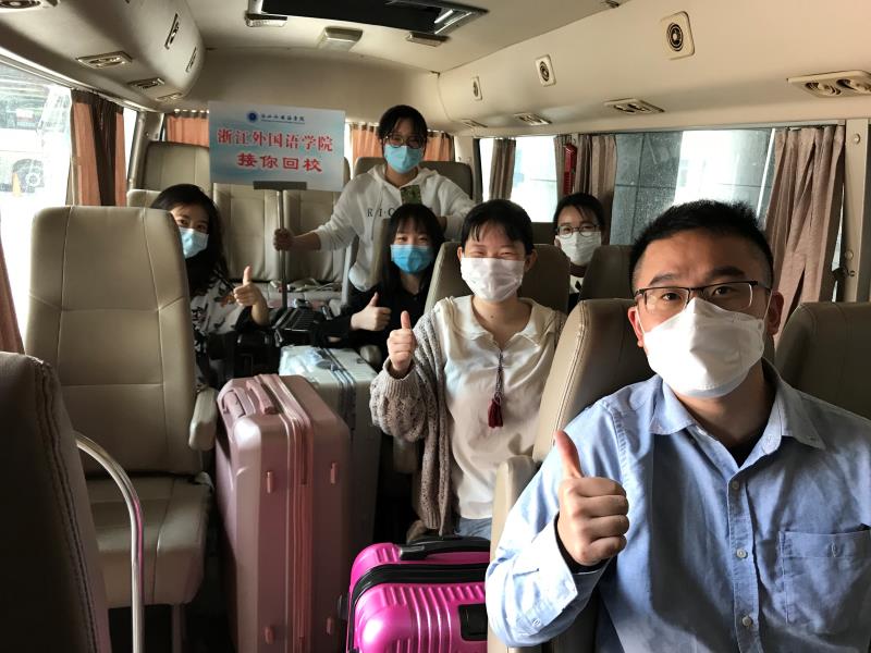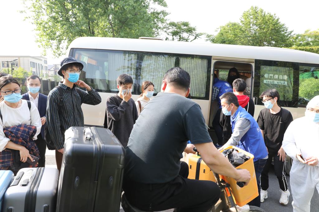原来,这群年轻人是由青年教师组成的爱心护送志愿队。“4月29日、30日,开云官网首批在校生要返校,总数达220余人。为了让同学们平安抵校,学校在萧山机场、火车东站、城站和汽车西站等都派驻了志愿者和大巴,从早上7点多到晚上7点多,点对点将同学们接回学校。”学工部负责人告诉记者,为此,学校前期招募了一批教师党员志愿者,并做了专业培训。