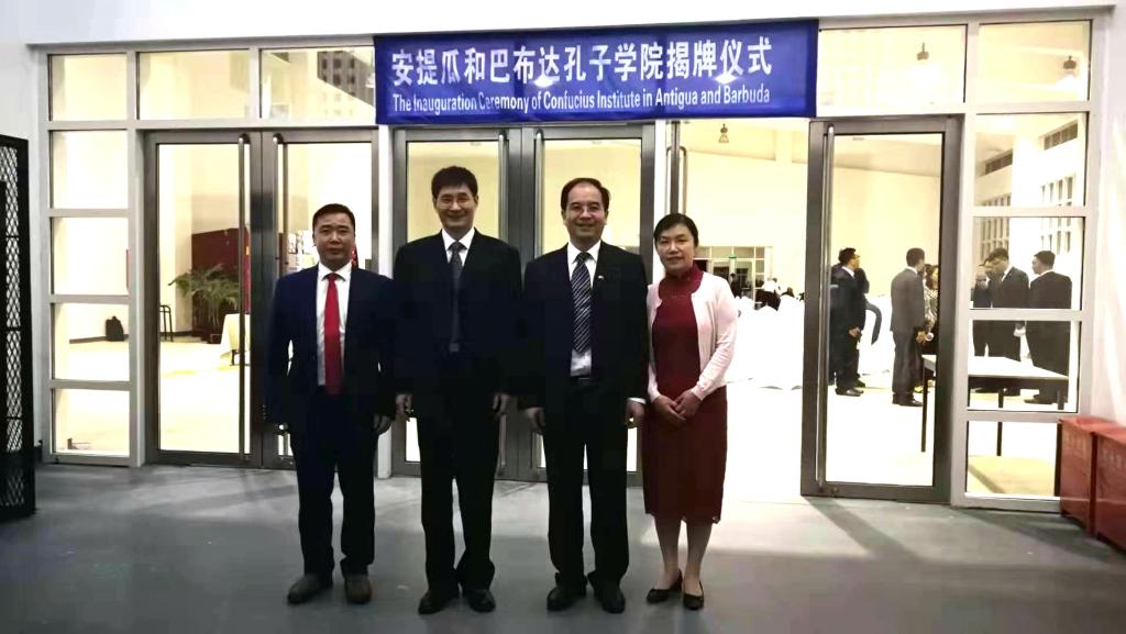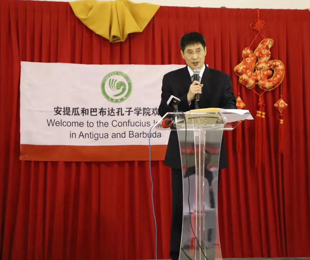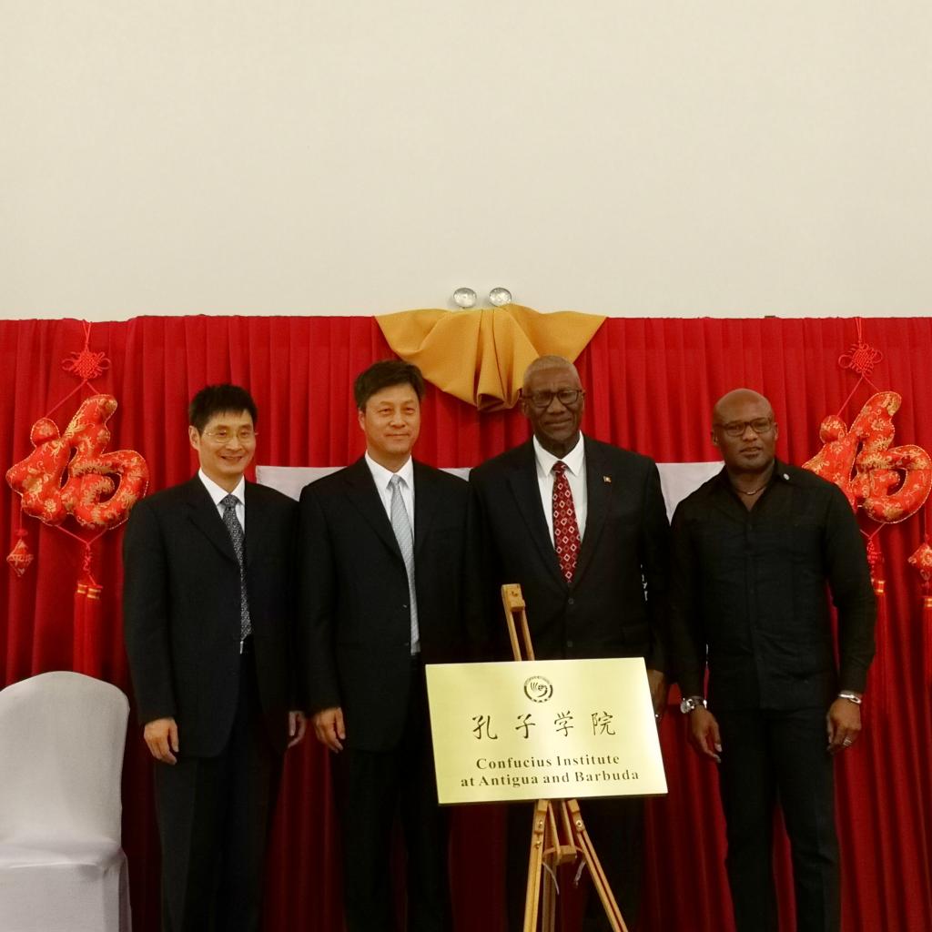 当地时间12月1日晚上6点,西印度大学五岛校区的体育馆时而掌声雷动,时而歌声悠扬。在200多中外嘉宾的共同见证下,安提瓜和巴布达总督罗德尼·威廉姆斯、驻安巴大使孙昂、安巴教育科技部部长迈克尔·布朗与校长洪岗一起为安提瓜和巴布达孔子学院揭牌。党委委员,党委组织部、统战部部长、党委宣传部部长徐勇出席仪式。