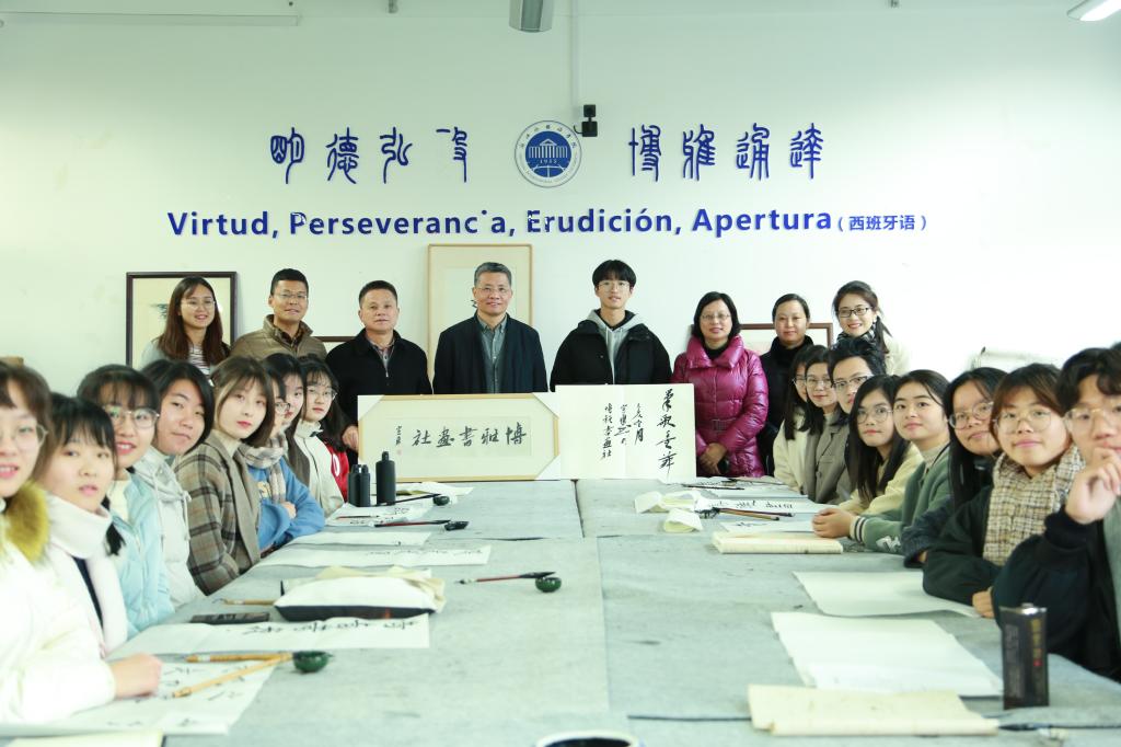 会上,宣书记在书画社集字册上题下了“笔歌墨舞”的寄语,鼓励同学们多举办些雅会,以笔会友。宣书记还与大家分享了优质的公益书法与传统文化资源。