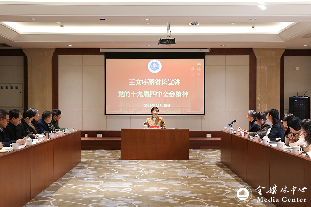 宣讲会上,王文序全面解读了中央和省委全会精神实质和深刻内涵,强调学习贯彻中央十九届四中全会精神,要做到“五个准确把握”:一是准确把握推进国家治理体系和治理能力现代化的重大意义;二是准确把握我国国家制度和国家治理体系的“13个显著优势”;三是准确把握我国国家治理体系和治理能力现代化的目标要求;四是准确把握推进我国国家治理体系和治理能力现代化的任务举措;五是准确把握党的领导制度在我国国家制度和国家治理体系中的统领地位。
