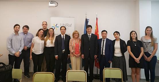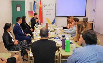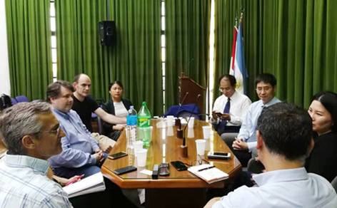 12月6日,洪岗一行访问了位于阿根廷圣菲省的拉菲拉大学(Universidad de Rafaela)、拉菲拉(Rafaela)市政府和进出口公司商会。拉菲拉大学副校长罗萨里奥.克里斯提安(Rosario Cristian)表示,她对代表团的到访期待已久。正在德国出访的拉菲拉大学校长路易斯.阿斯库阿(Luis Ascua)通过视频和洪岗一行进行了交流。两校就学生交换、教师合作科研和孔子学院建设等进行了深入协商。
