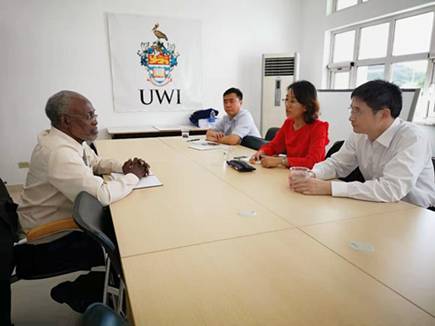 洪岗与西印度大学五岛校区校长座谈交流。