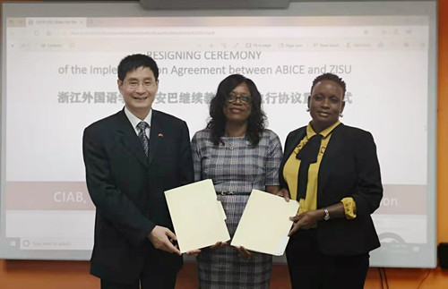 洪岗和安巴孔子学院交换《执行协议》。